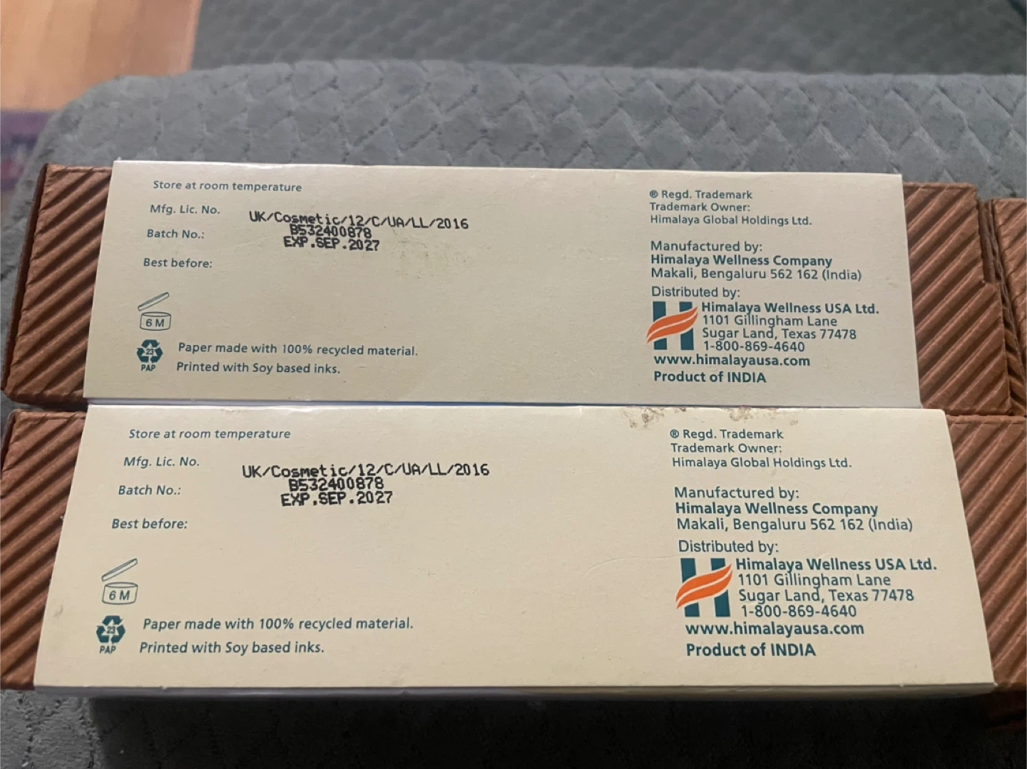 Net Wt. 5.29 oz (150g) each. Best before Sept. 2027. Manufactured by Himalaya Wellness Company.