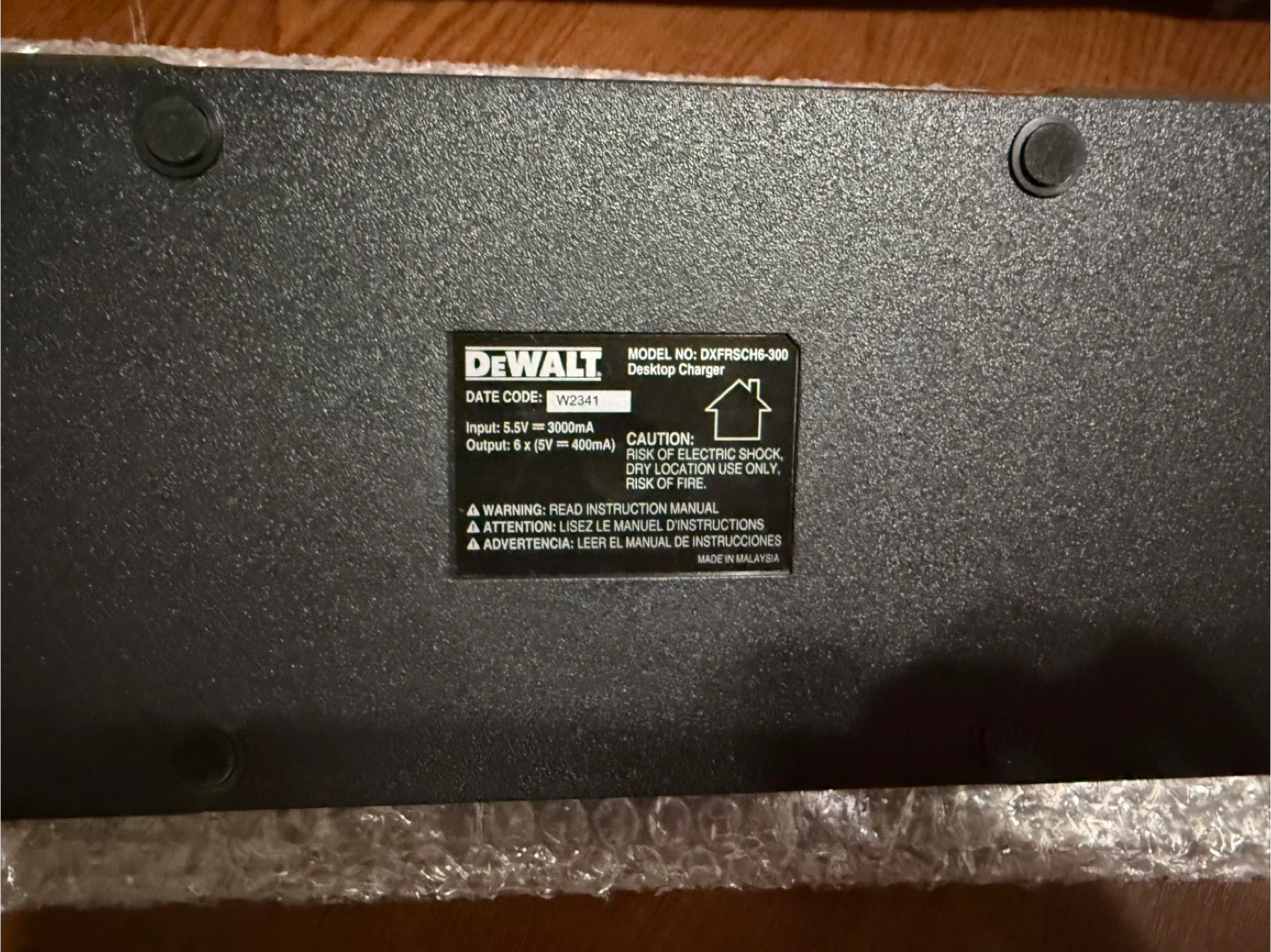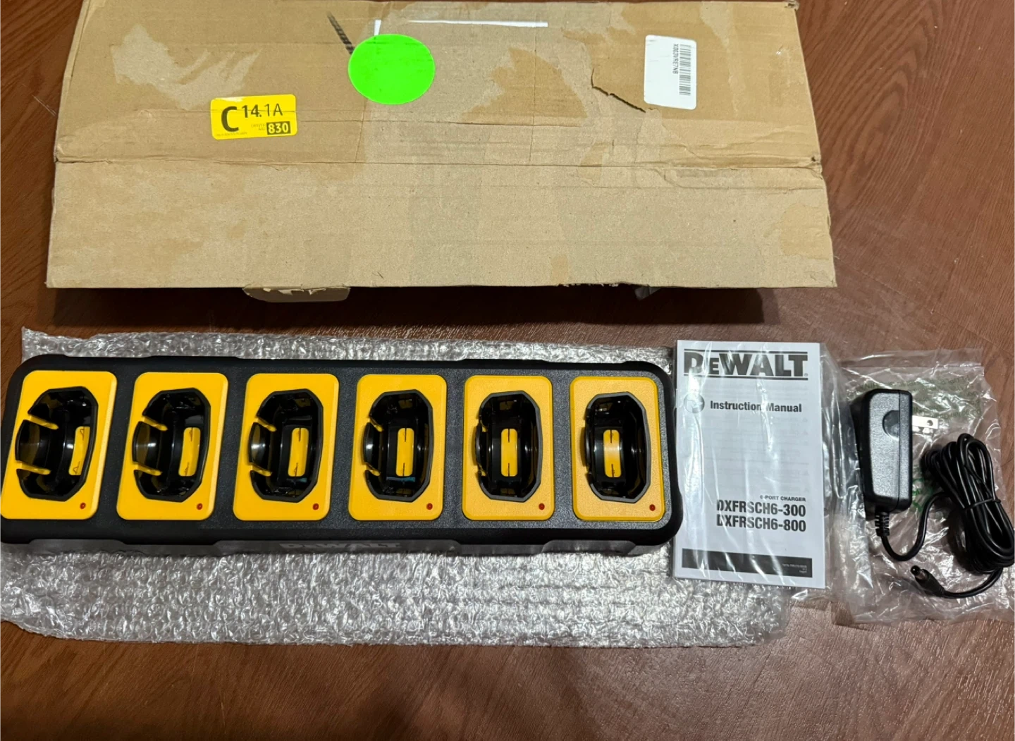 DeWalt 12V/20V MAX Lithium-Ion battery charger. Charges batteries quickly with its dual voltage capability. Includes charger, manual, and power cord.