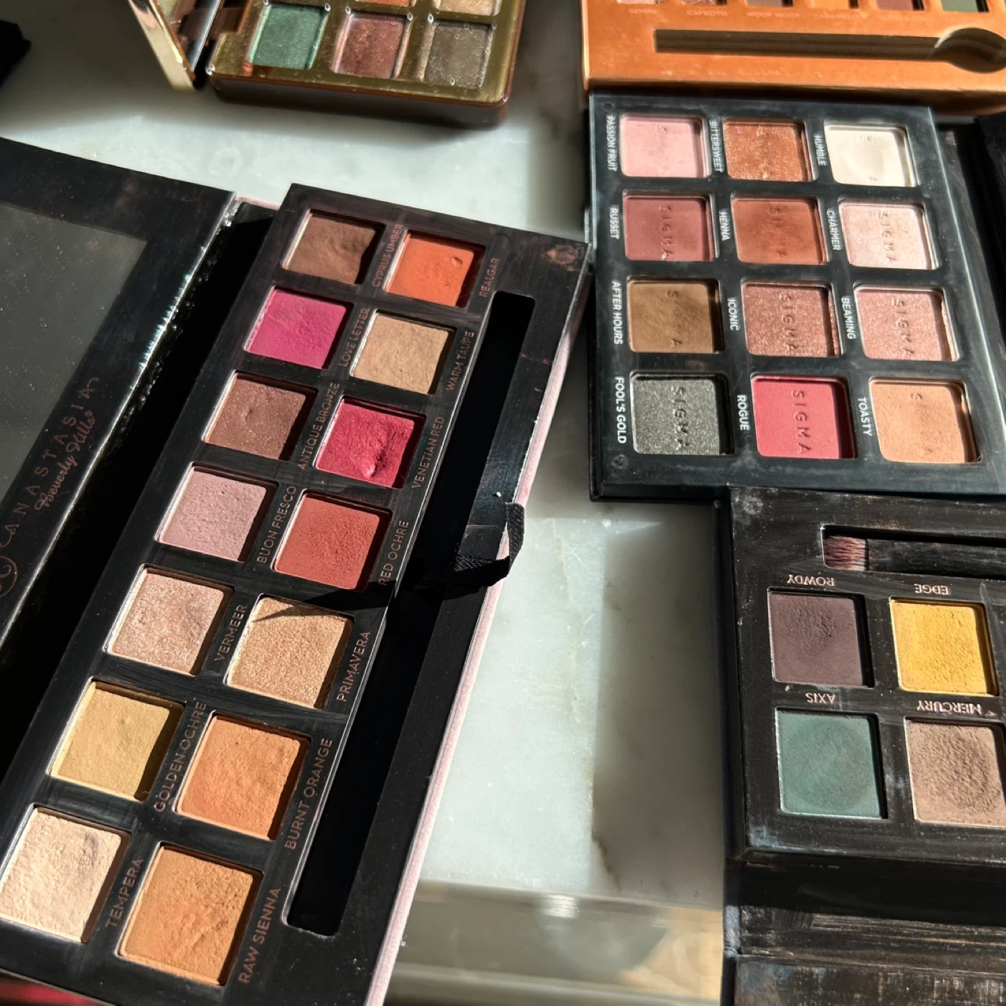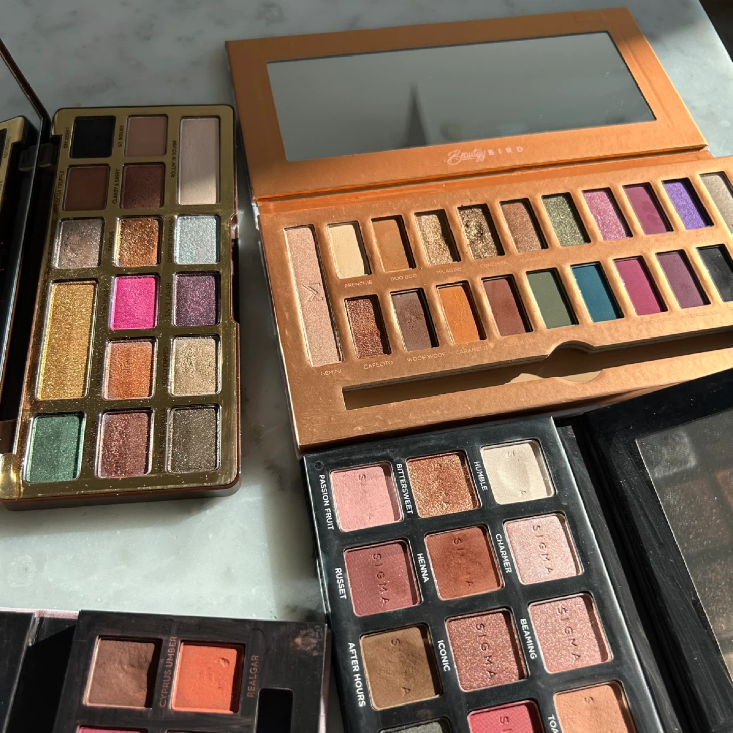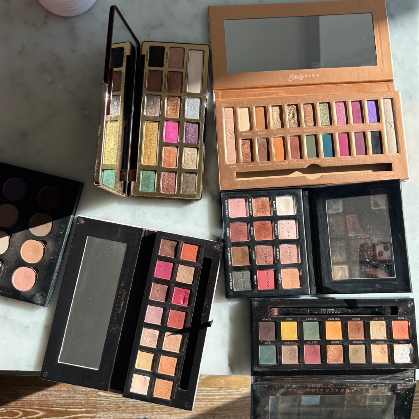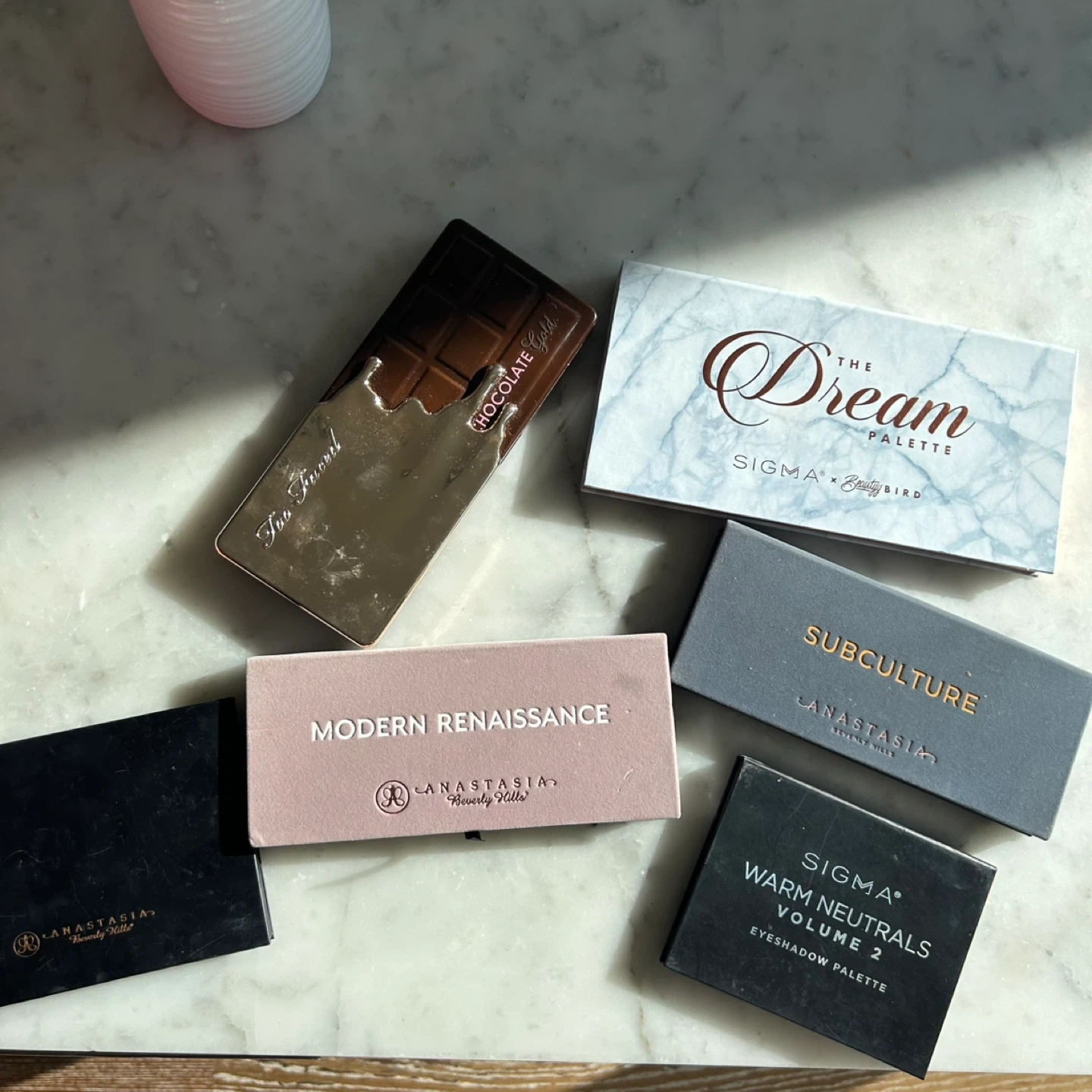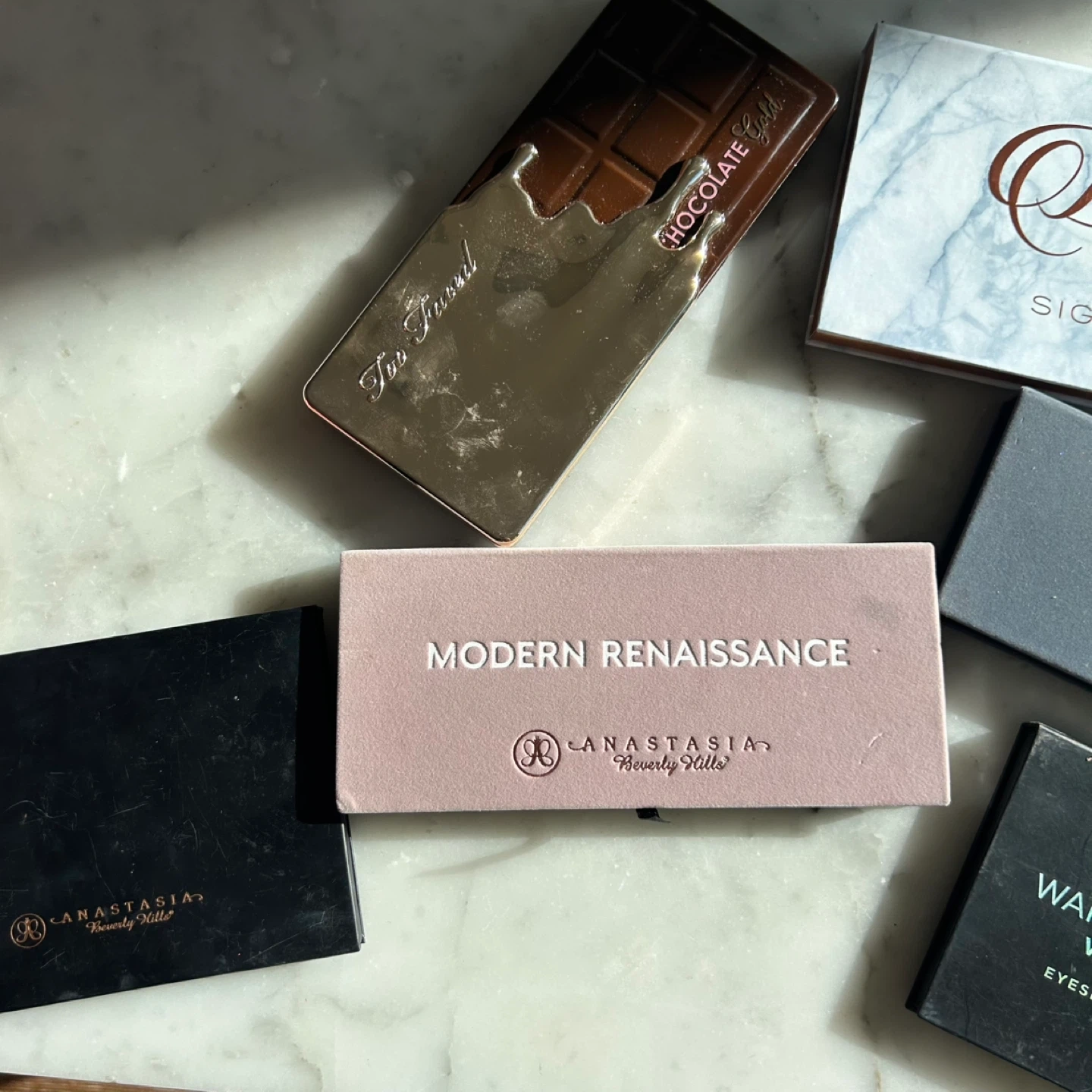 Collection of eyeshadow palettes including Anastasia Beverly Hills Modern Renaissance and Subculture, Sigma Beauty Bird and Warm Neutrals Volume 2, and Too Faced Chocolate Gold. Each palette offers a variety of shades. Sold as a bundle only for moving/time purposes (not sold separately) Retail value over $250+ Pickup near Park Lawn Road and Lakeshore Blvd W