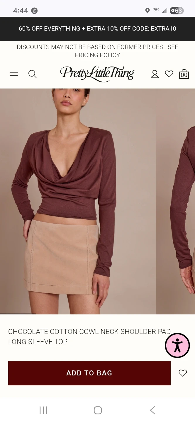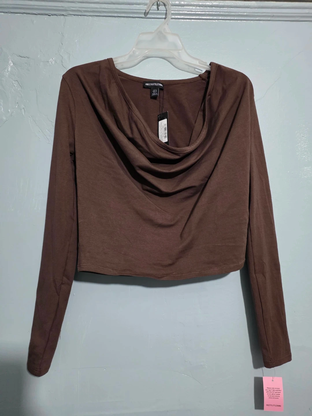 PrettyLittleThing Chocolate Cotton Cowl Neck Top