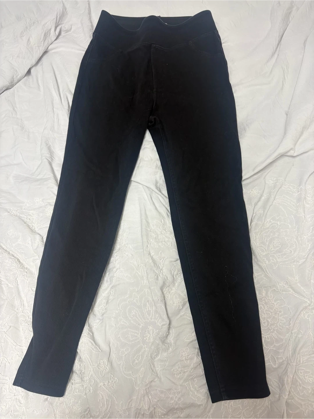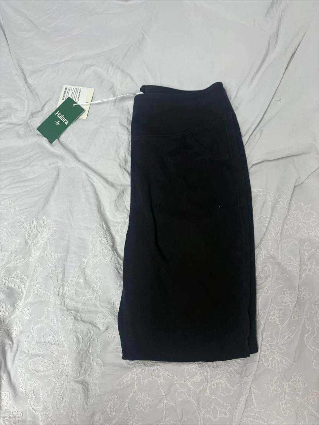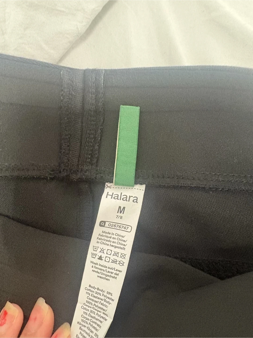 These black Halara leggings are size medium. They're made with a body blend of 89% Cotton, 10% Polyester, and 1% Elastane for comfort and stretch. They feature pockets for convenience. Size mejume pick up cash only