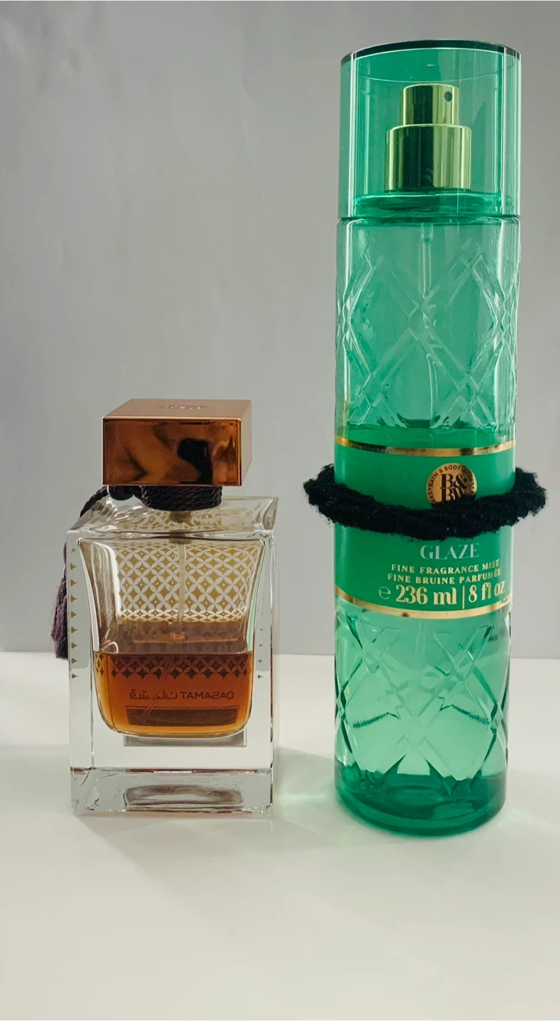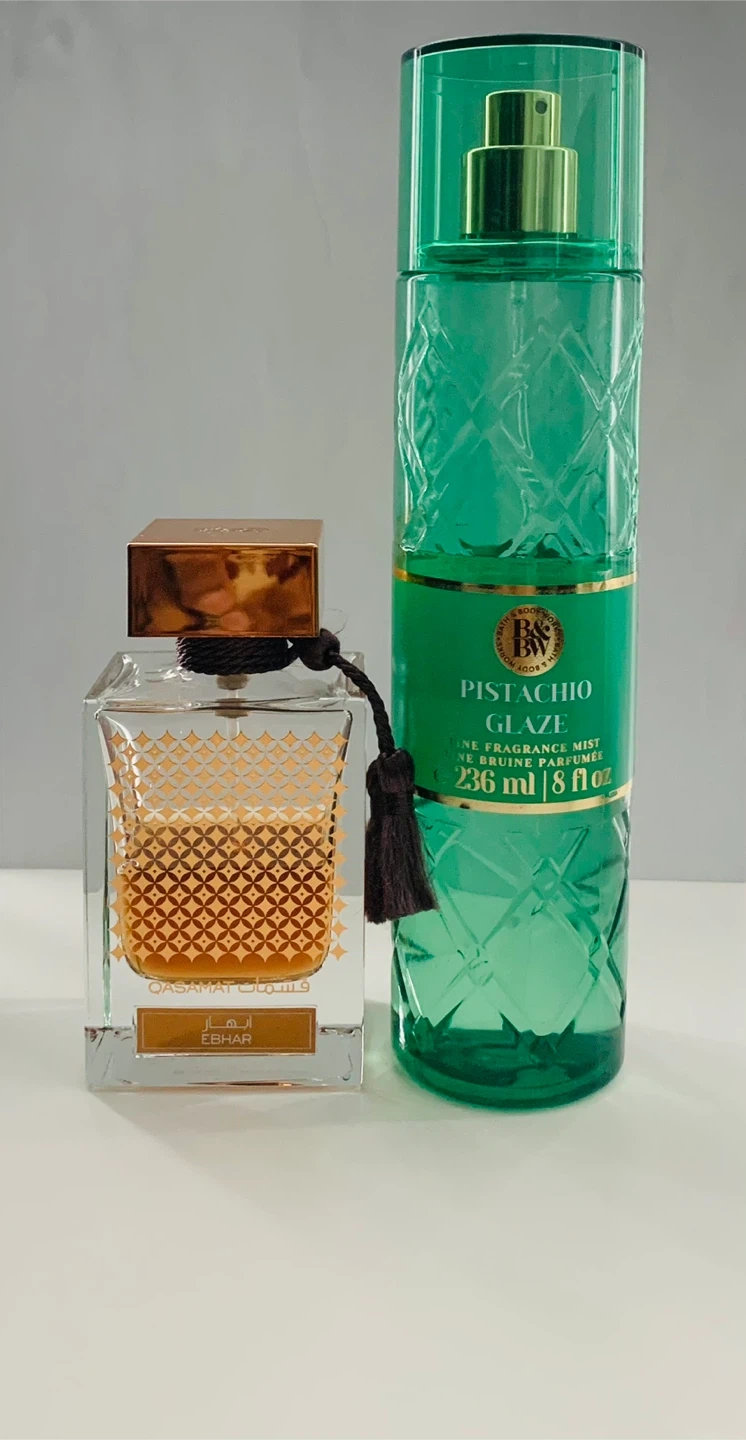 Rasasi Qasamat Ebhar and B&BW Pistachio Glaze