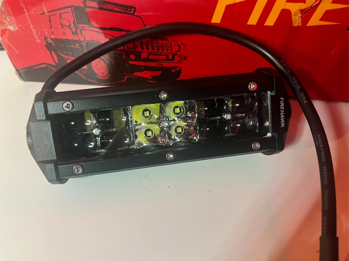 This is a 2 FIREHAWK 6 inch LED light bar. It's made for off-road use. It's a pair of bars with a durable housing. The package contains 2 bars 6 inches each one and all the cables come with