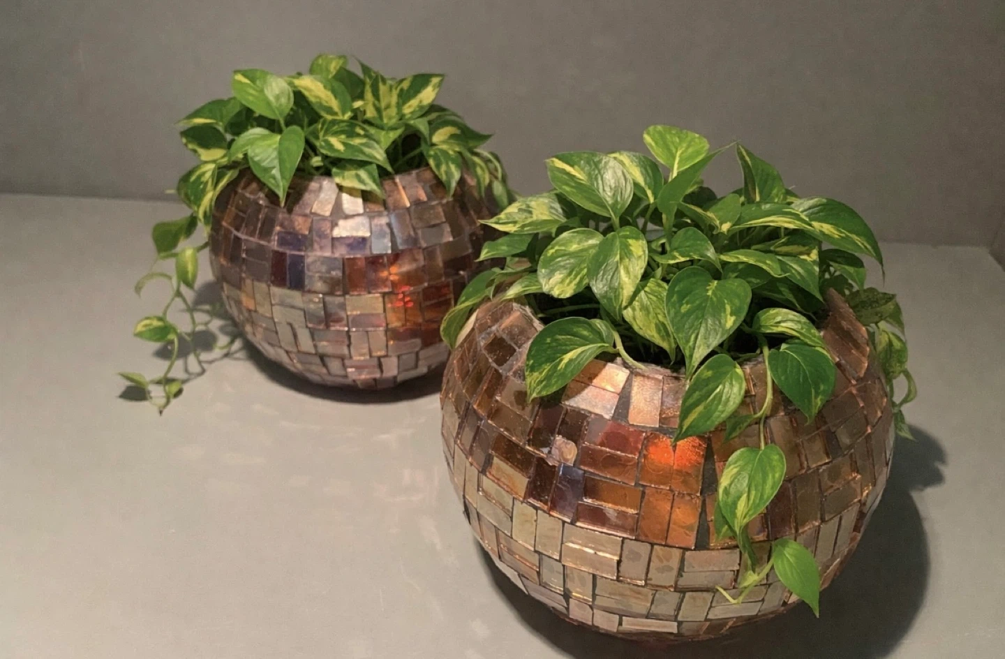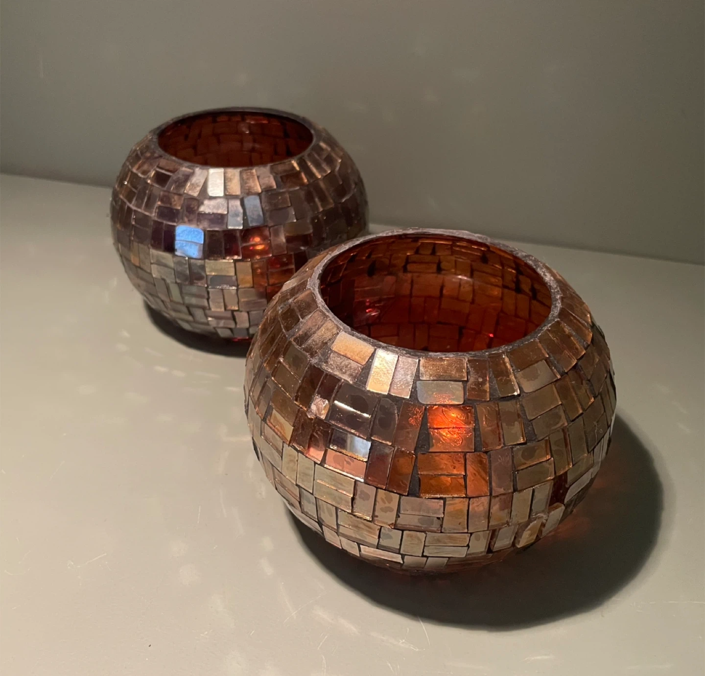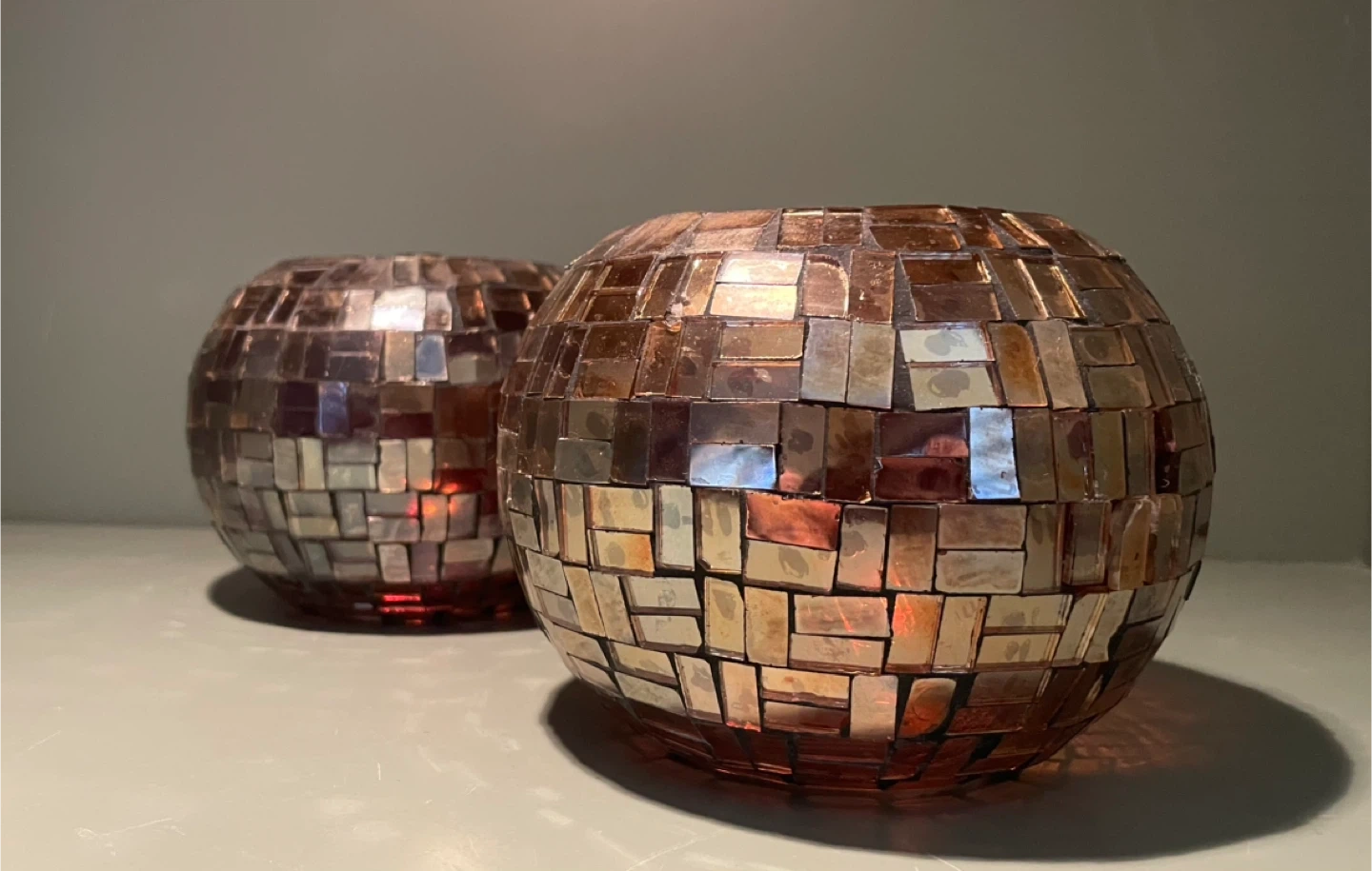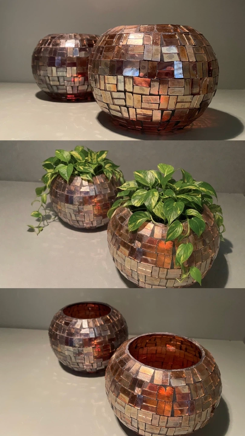Vintage Mosaic Glass Candle/Plant Holder, Set of 2