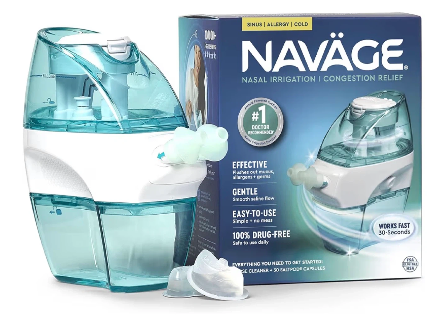 A Breath of Fresh Air: You want congestion relief now; The Navage Nasal Cleaner is an effective, drug-free nasal suction device that works quickly to soothe nasal passages by sucking out mucus, allergens and germs; Our saline nasal rinse works to help you breathe easier, sleep better and feel healthier