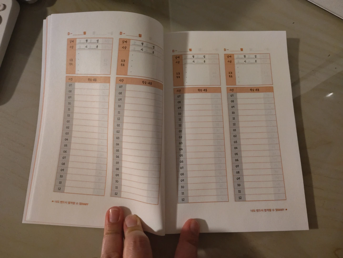 This is a diary designed for studying. It includes hourly planning pages and lined note pages. The cover features the title 'Diary' and a pen graphic. It's from the publisher (주)시대고시기획.
