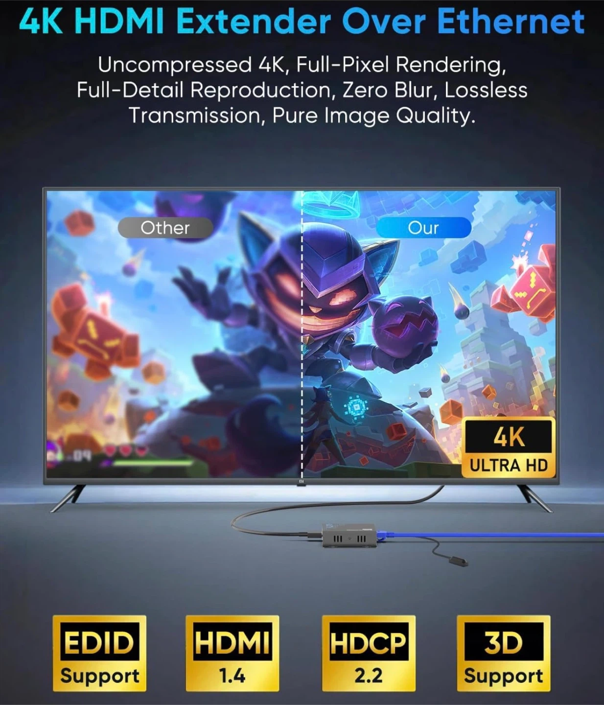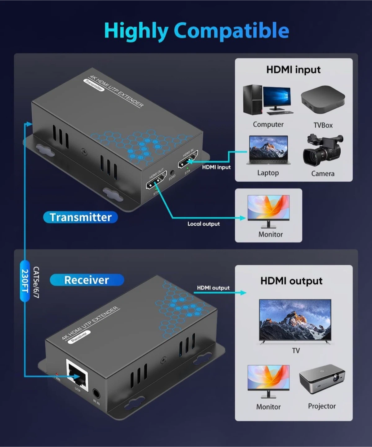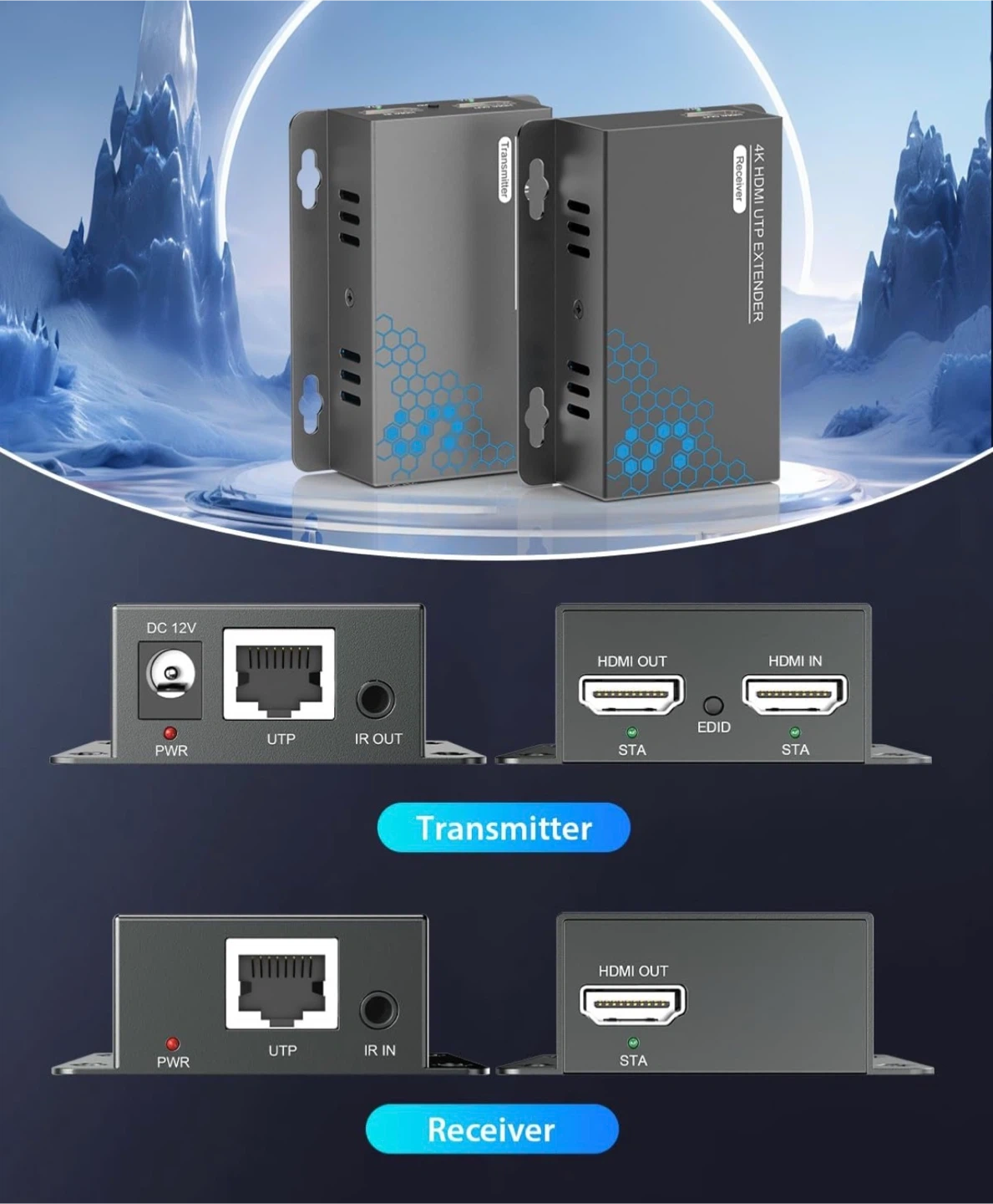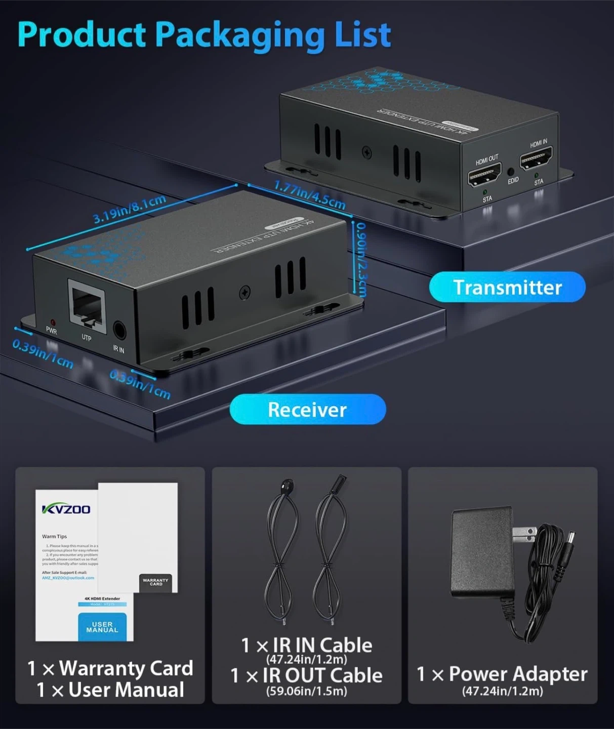 4K HDMI Extender Over Ethernet Transmitter Receiver Kit