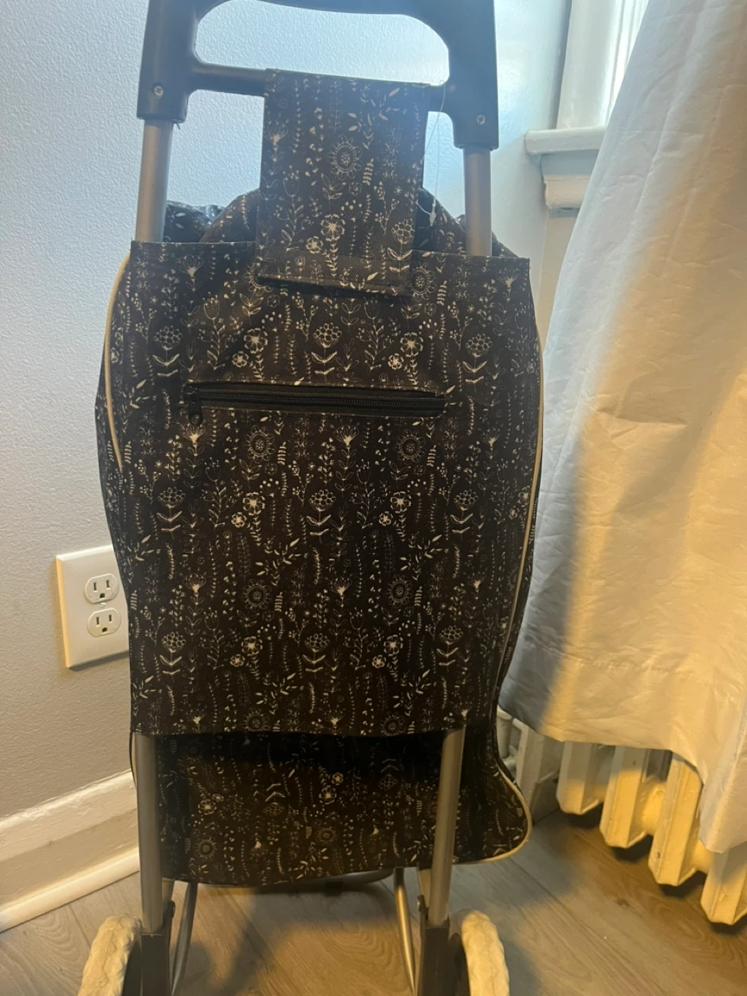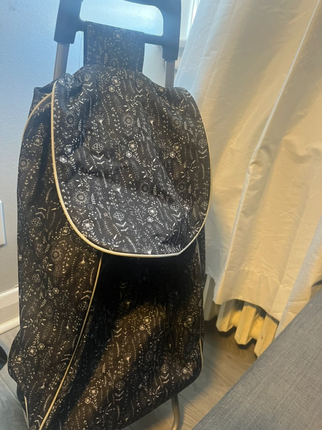 Black Floral Rolling Shopping Cart