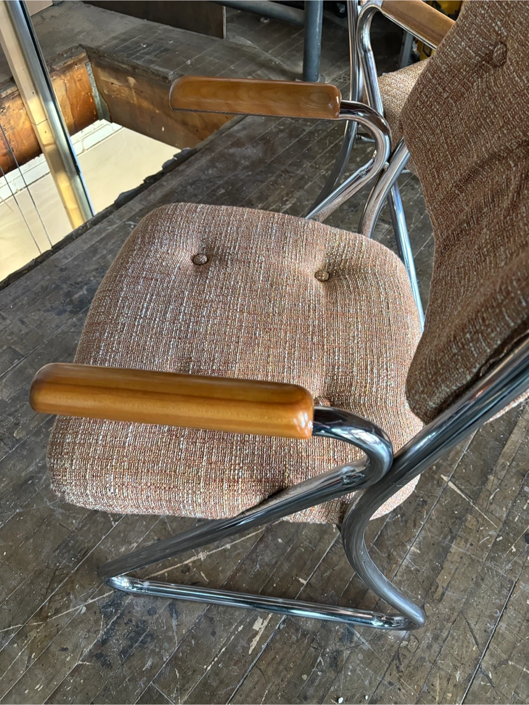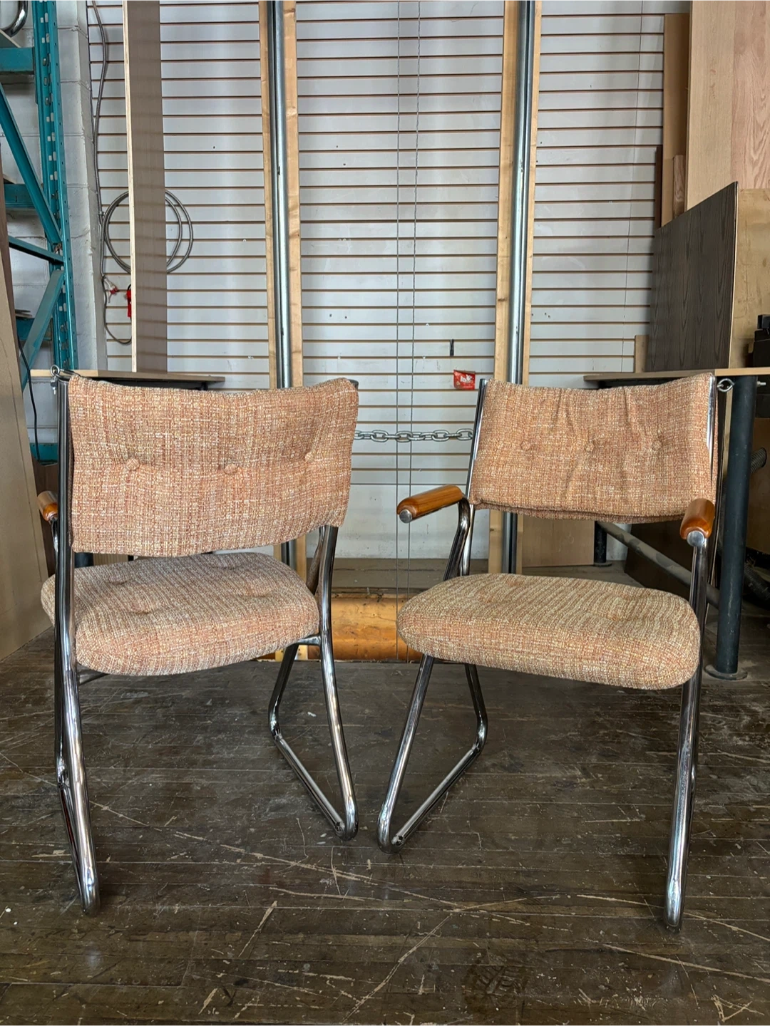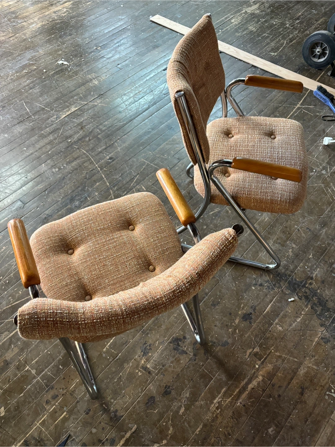 Super cool dining chairs. Professionally reupholstered, arm rests refinished and the chrome polished all in my shop. I’ve had them at home for the last few months but they just dont fit my space.