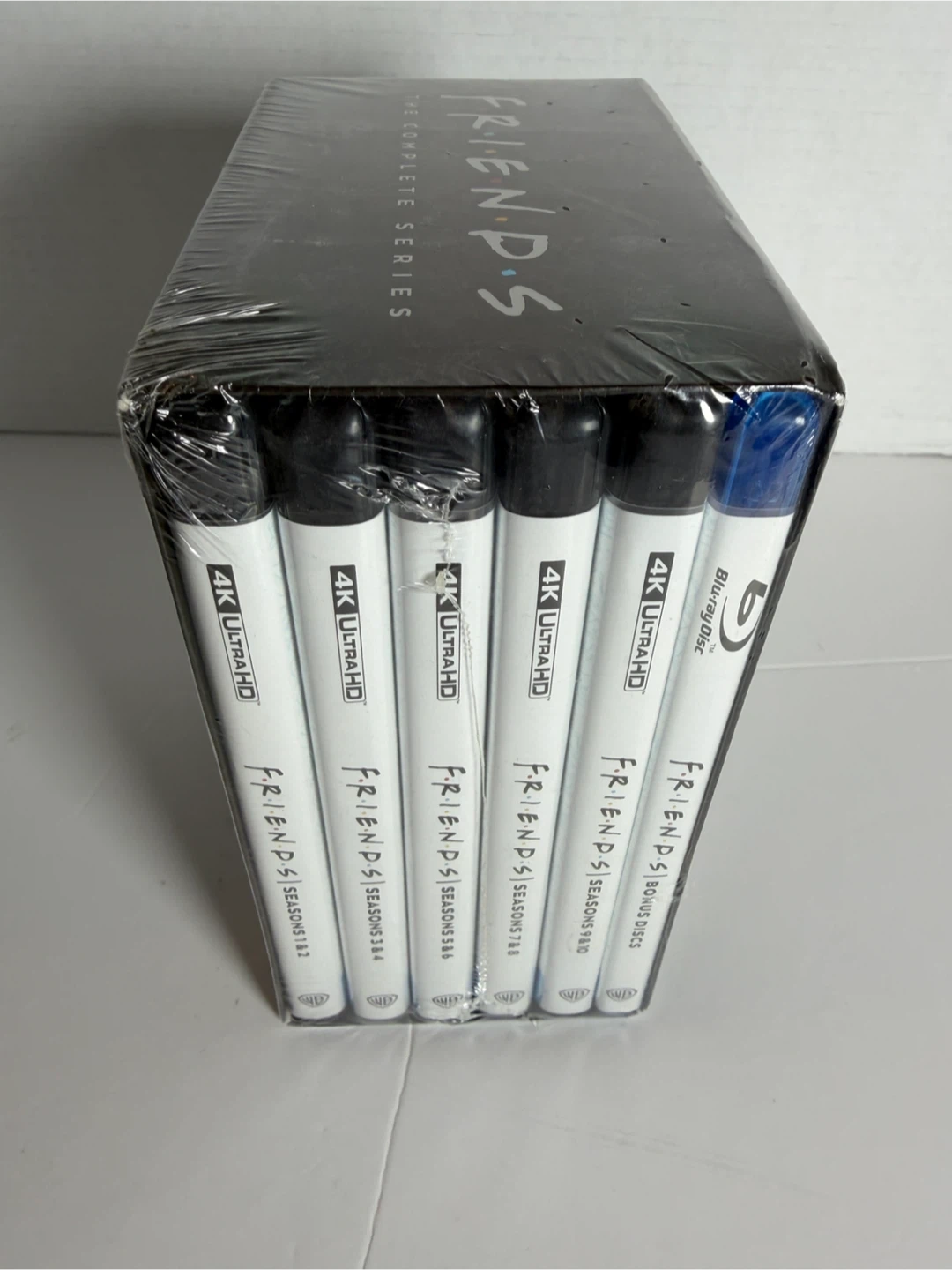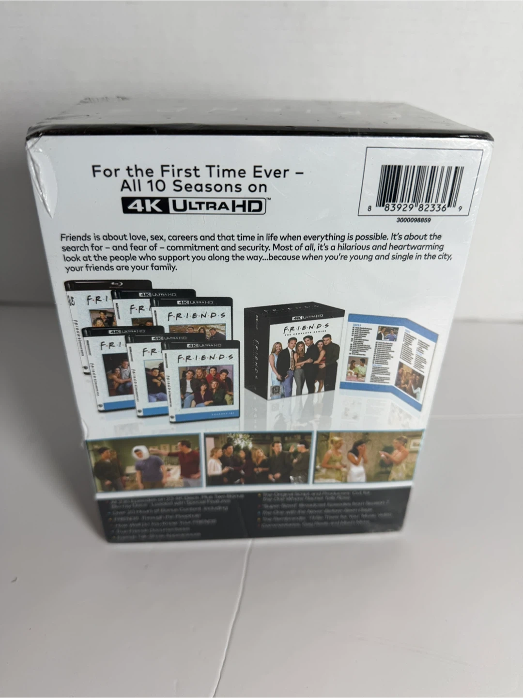 Own the entire Friends series on 4K Ultra HD Blu-ray! It includes all 10 seasons plus bonus discs. This set is brand new and sealed.