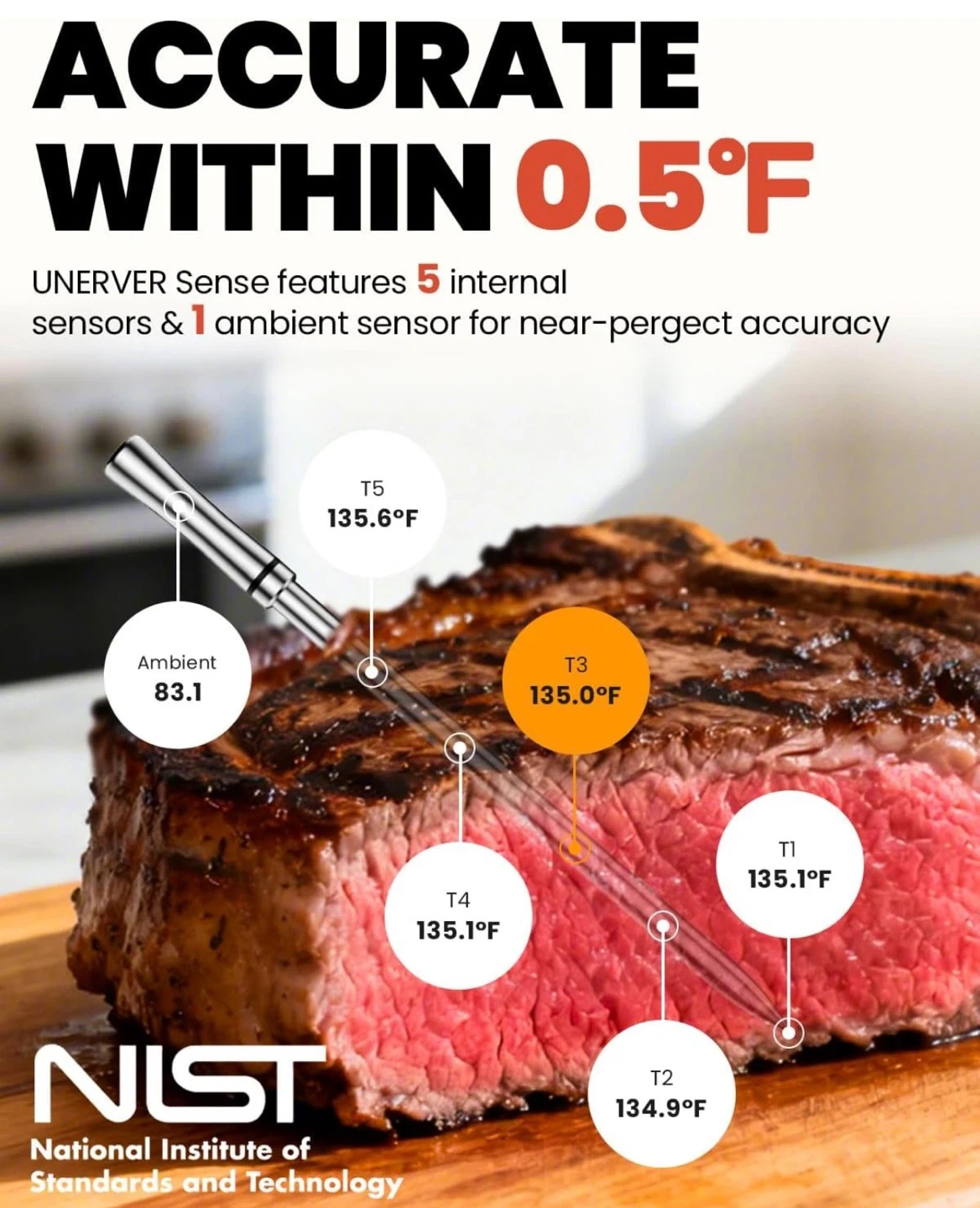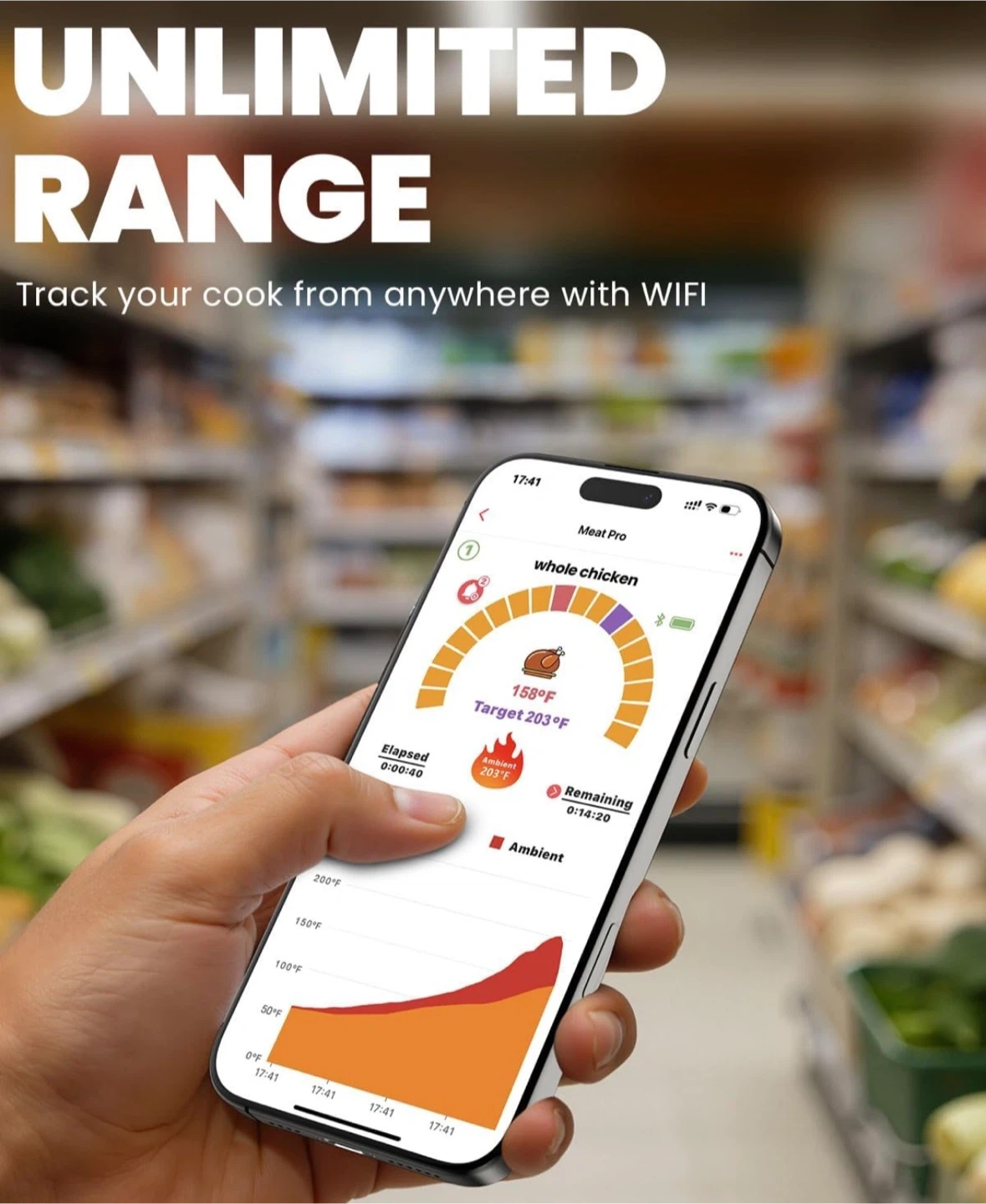 Wireless Meat Thermometer with WiFi Unlimited Range - Ultra Thin Probe with 6 High Accuracy ±0.5°F Sensors, Digital Bluetooth Base, Login-Free Smart App, Ideal for Smoker, Oven, Rotisserie