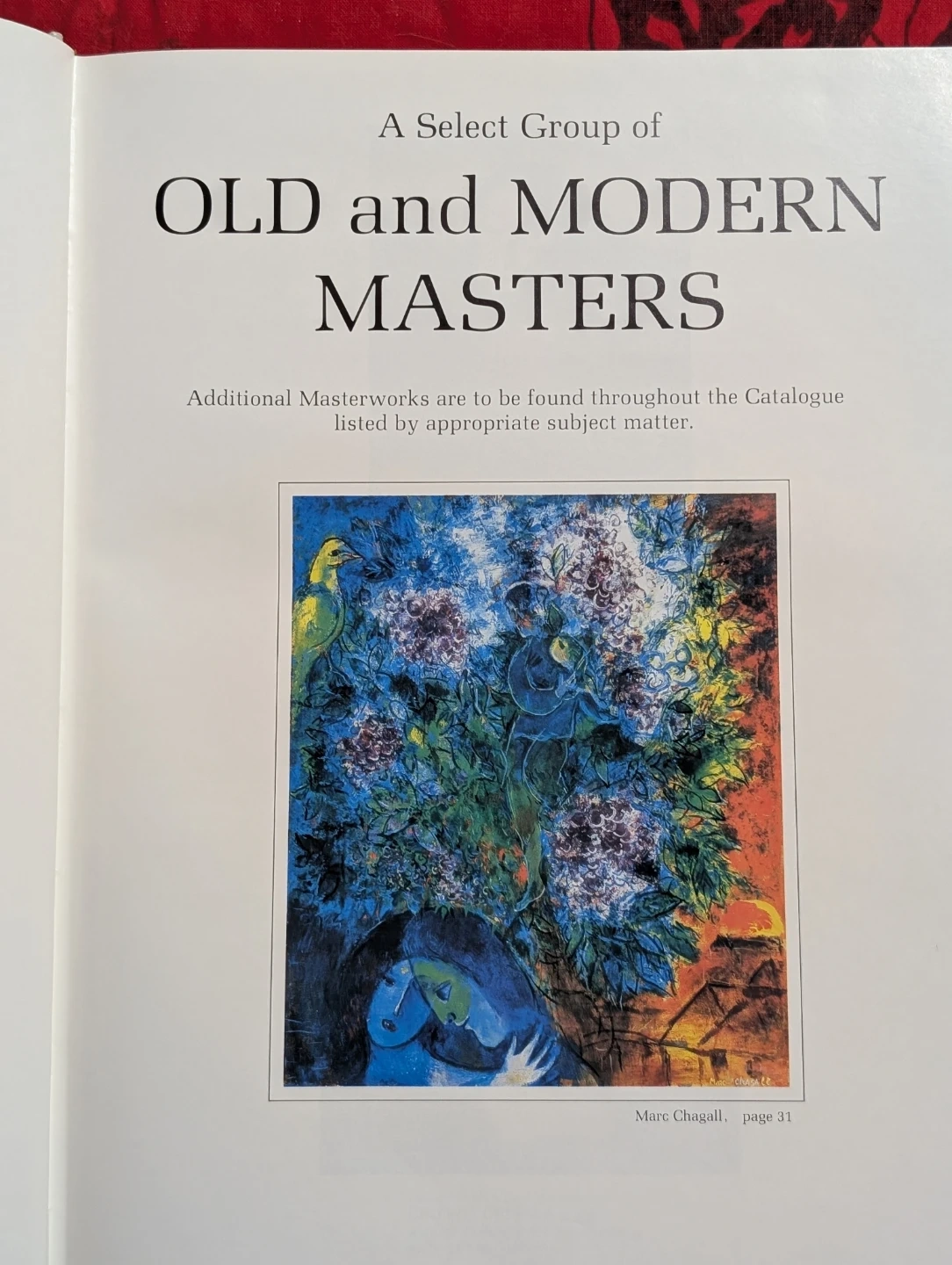 A select group of paintings by Old and Modern Masters. Features works by Jean-Baptiste Camille Corot and Henri Joseph Harpignies. Additional masterworks are listed throughout the catalogue by appropriate subject matter. This book is a great resource for art enthusiasts.
