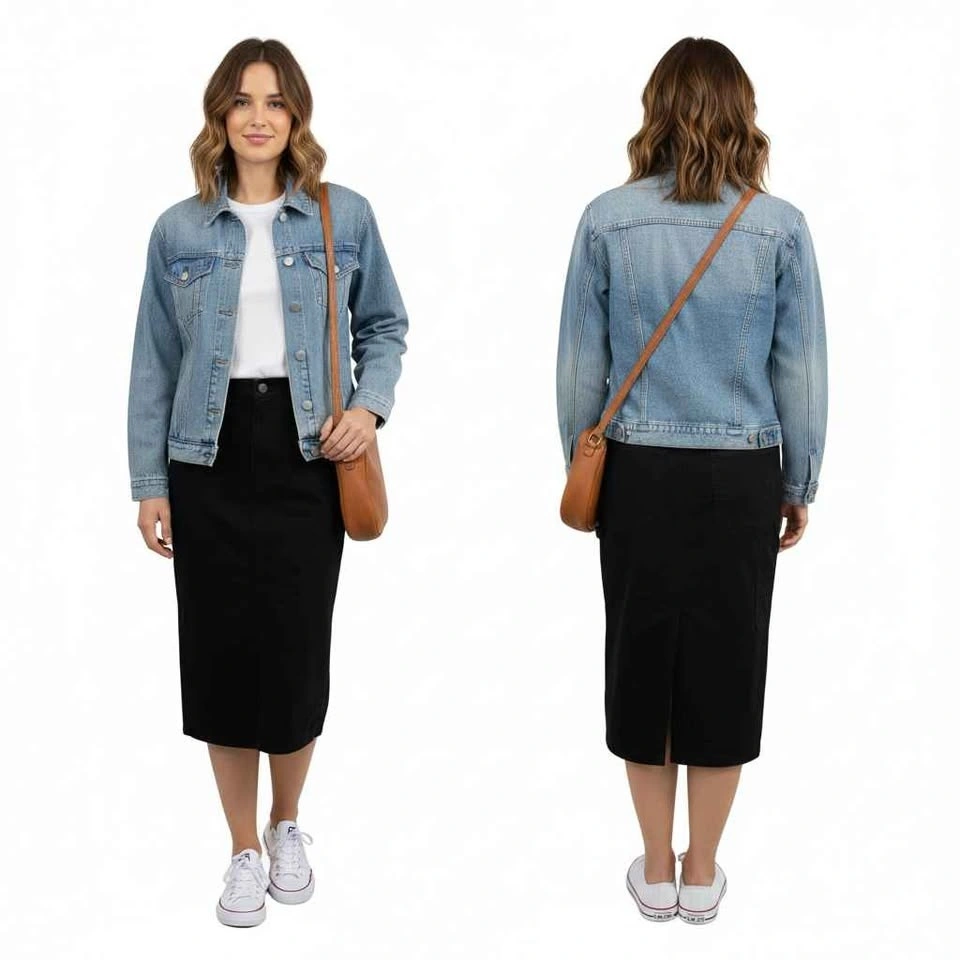 Fit: Flattering high-waisted fit that hits at a midi length.