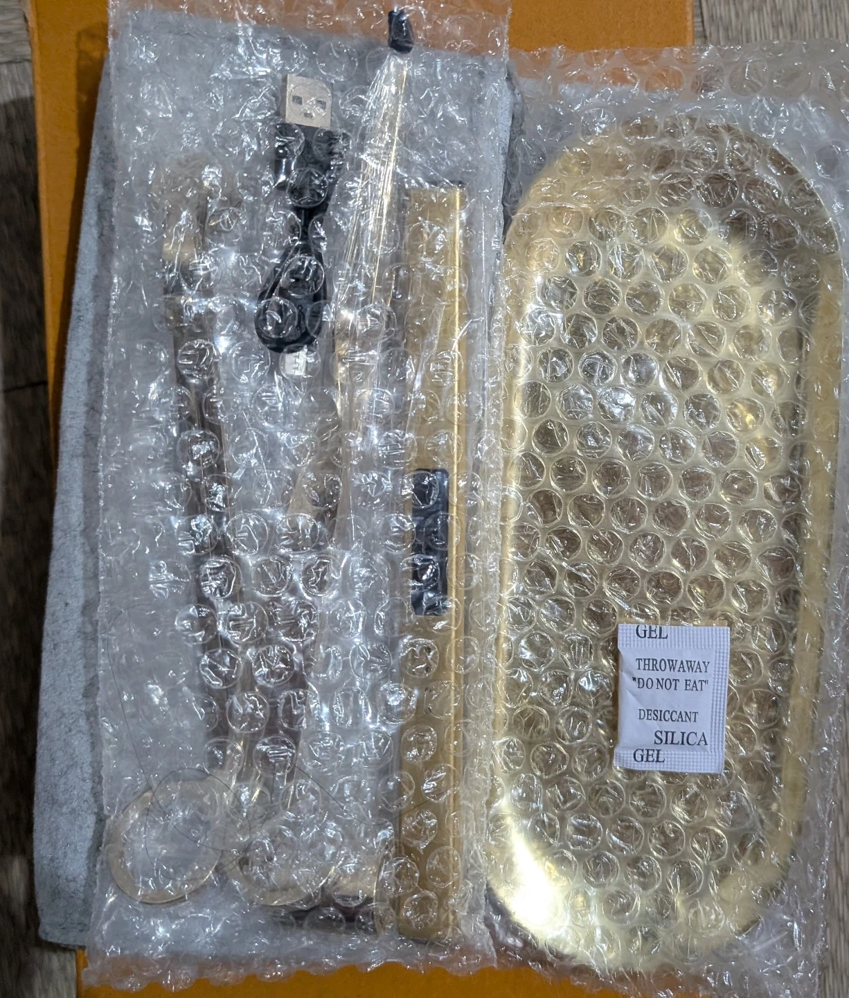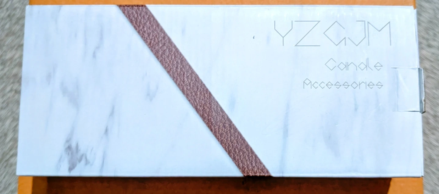 This YZGJM candle accessory kit includes a wick trimmer, candle snuffer, and a USB rechargeable lighter. It also comes with a golden tray and a grey felt storage sleeve. Everything you need for a perfect candle experience!