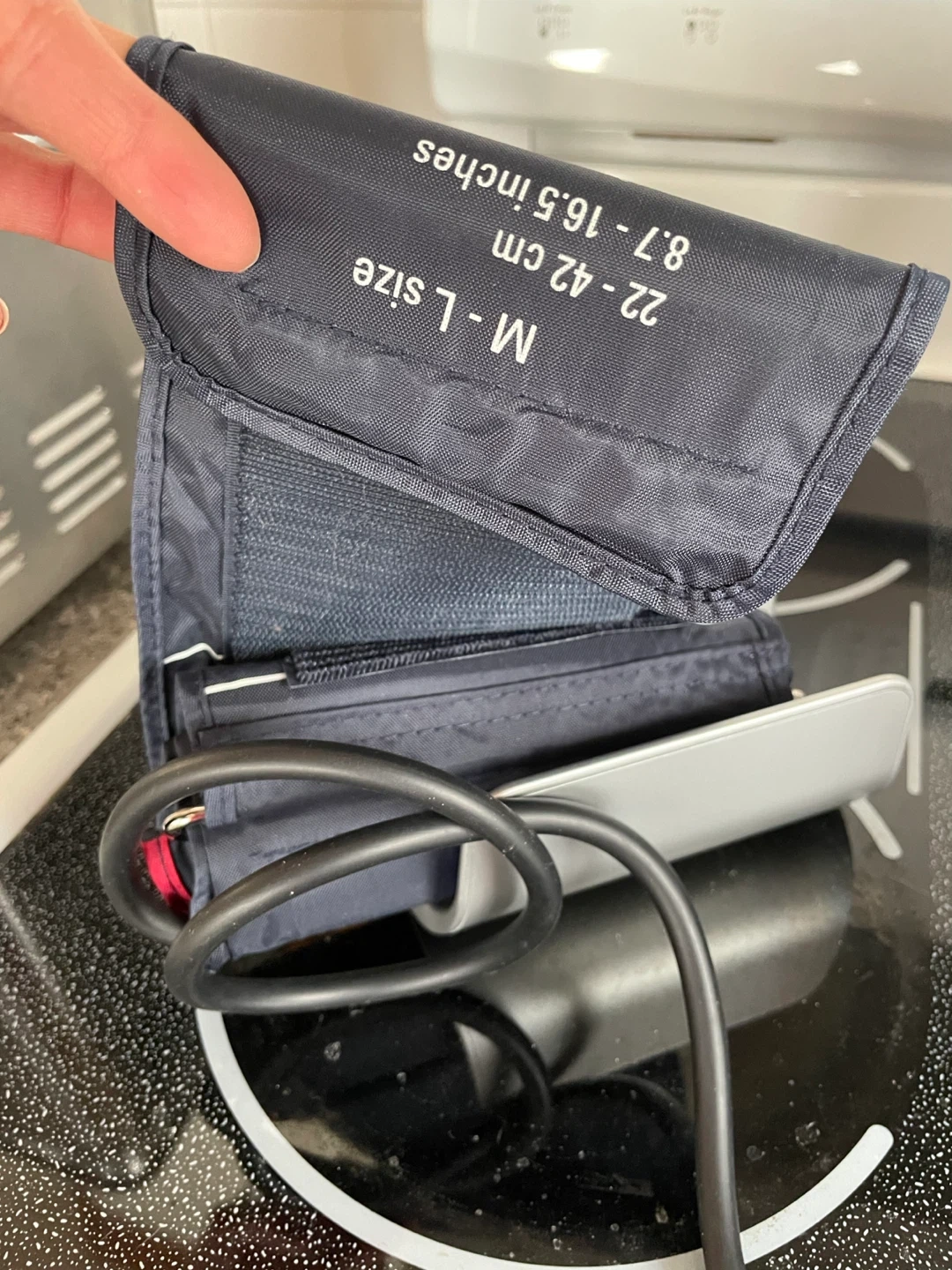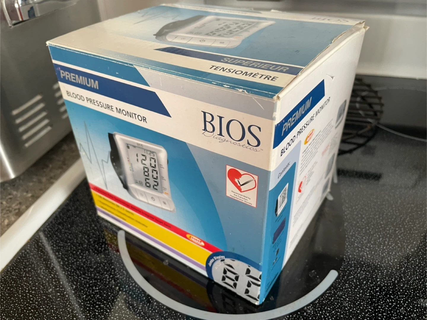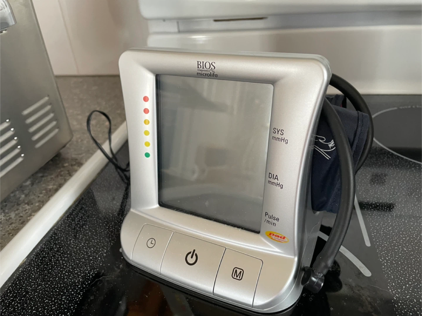This is a BIOS Diagnostics Premium Blood Pressure Monitor. It comes with a medium-large size cuff (8.7-16.5 inches or 22-42 cm). This device is great for tracking your blood pressure at home.