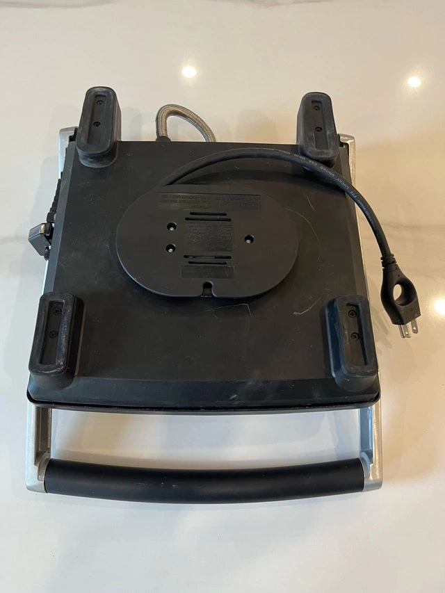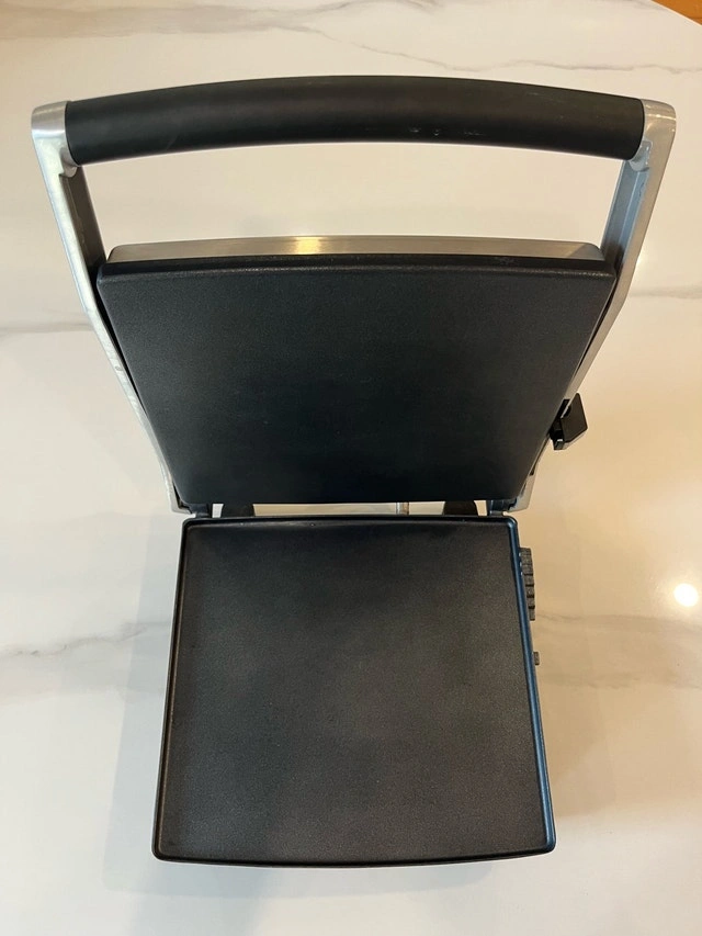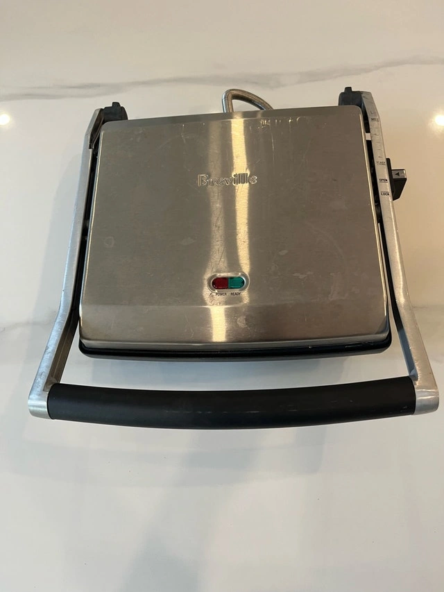 Breville panini press in good condition. Perfect for making delicious toasted sandwiches and has been well-maintained. The non-stick plates make for easy cleanup. Although it's a bit worn, it still works great! Features: Non-stick plates, Adjustable height control, Power and ready lights. Cash accepted.