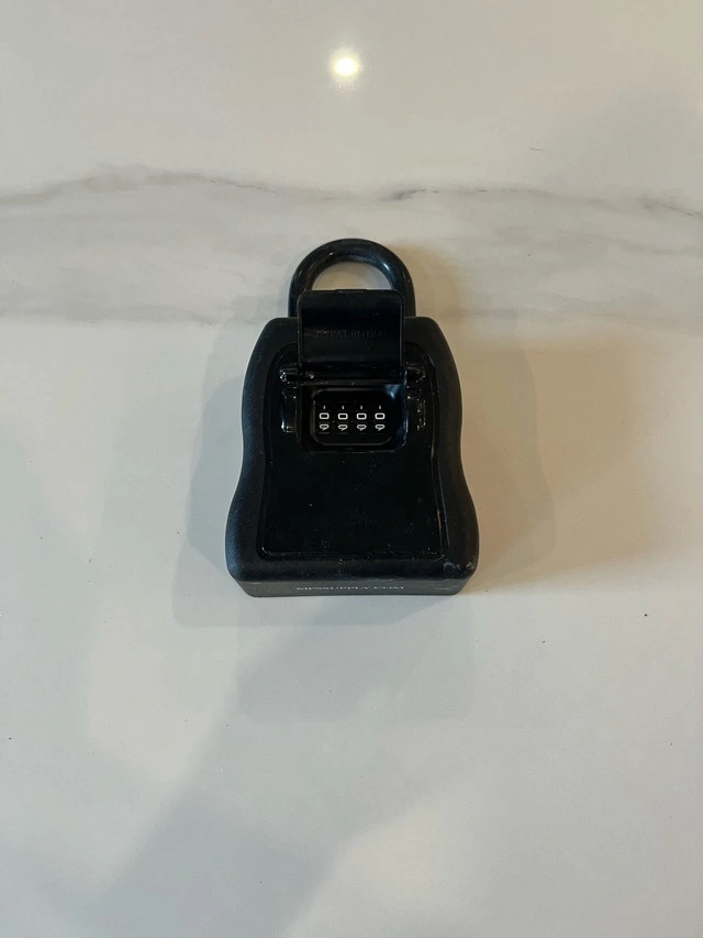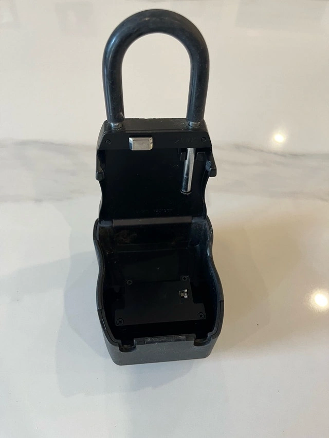 Keep your keys safe and secure with this Master Lock key lockbox! This lockbox is in used condition, but fully functional, making it a reliable solution for storing spare keys. It features a four-digit combination lock, allowing for easy setup and reset of your personalized code. Specifications: Brand: Master Lock, Type: Key Lockbox, Lock Type: Combination, Colour: Black. Cash accepted.