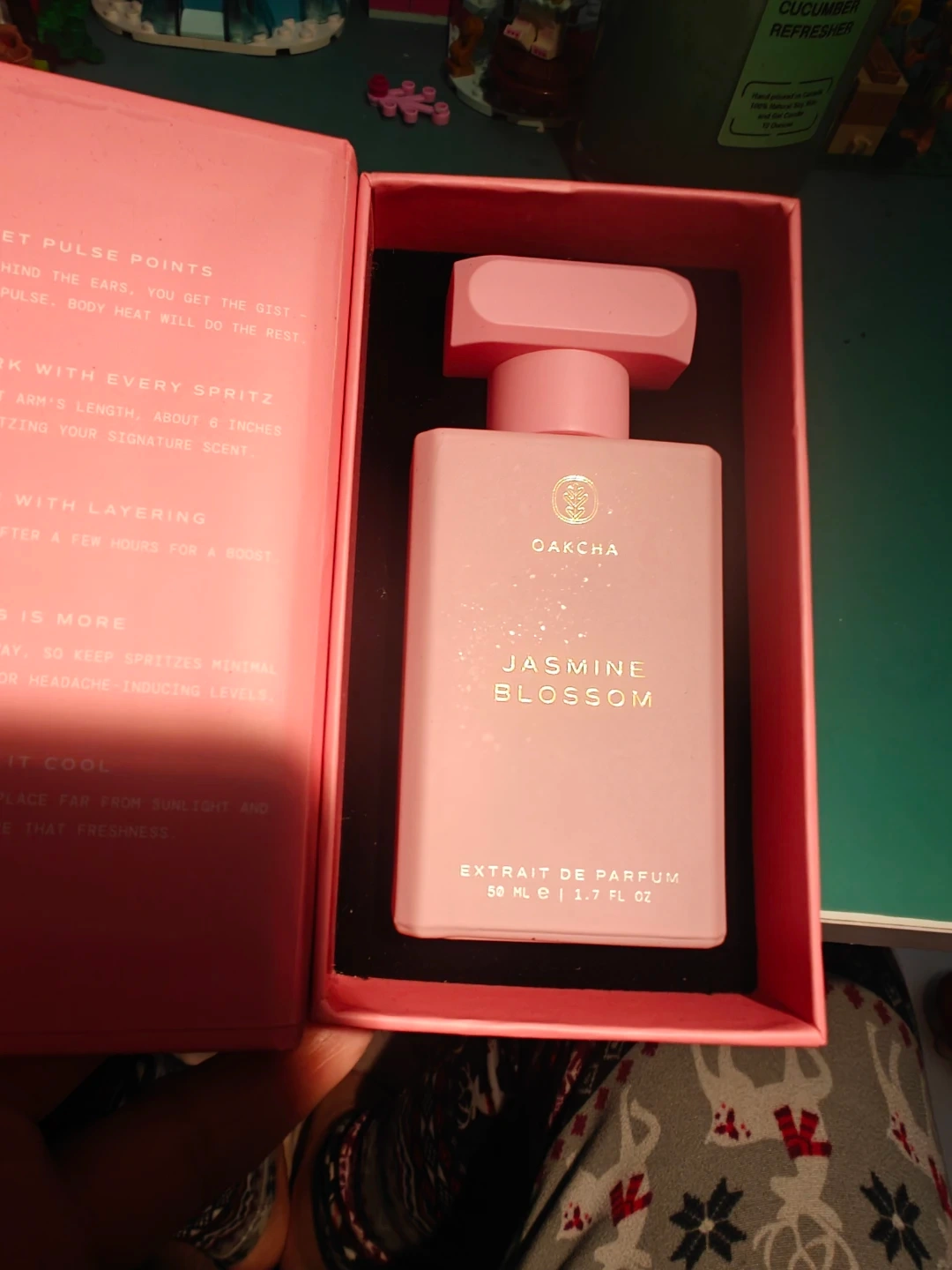 OAKCHA Jasmine Blossom Extrait de Parfum. This perfume comes in a 50 mL (1.7 FL OZ) bottle. It's a lovely floral scent for everyday wear.
