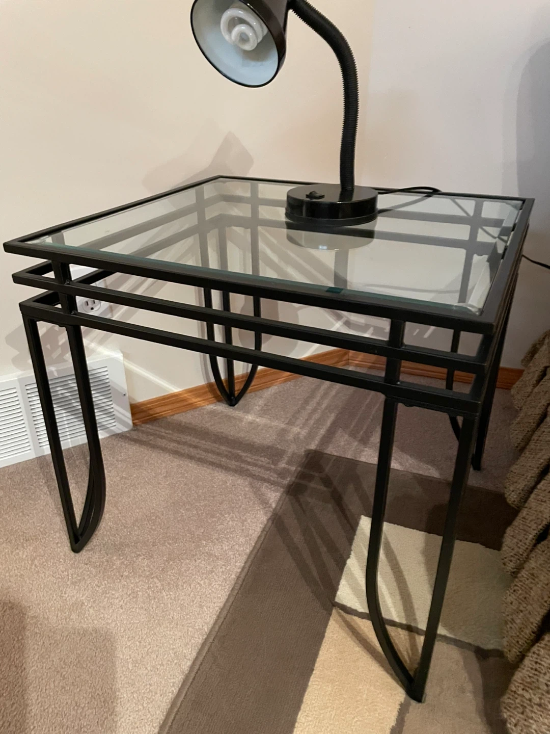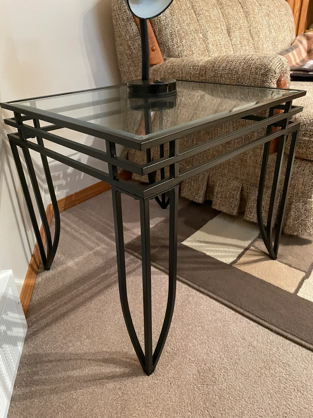 Glass Top Coffee Table, Matching End tables Black Metal Frame