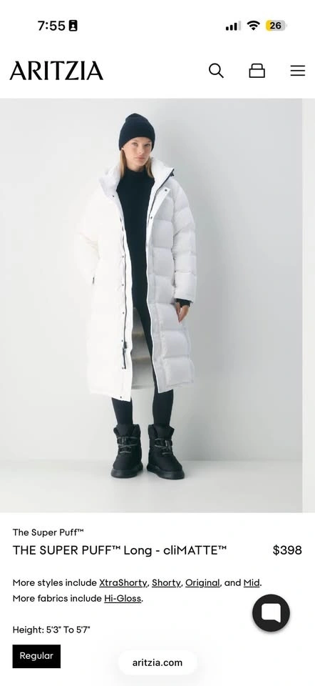 Aritzia Super Puff Long - cliMATTE™ Size XS NWT