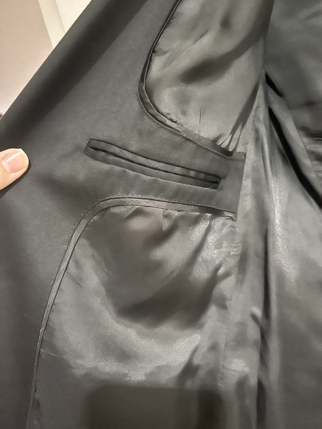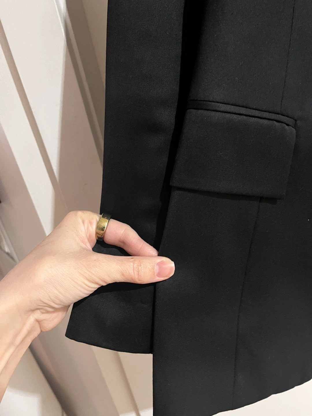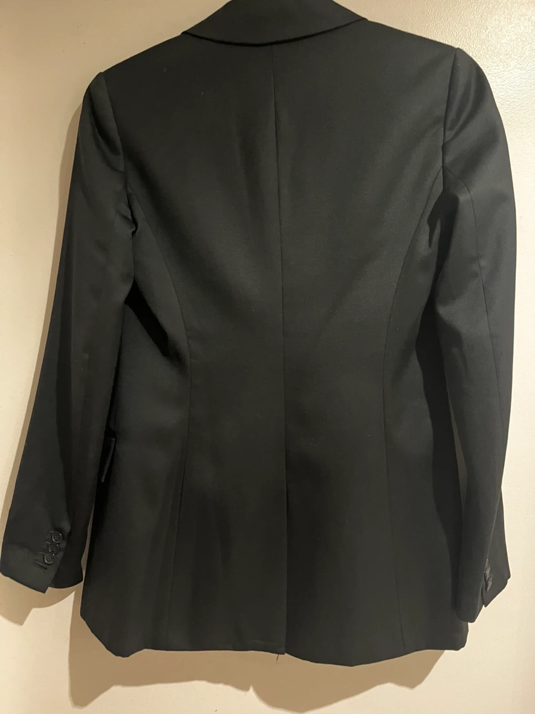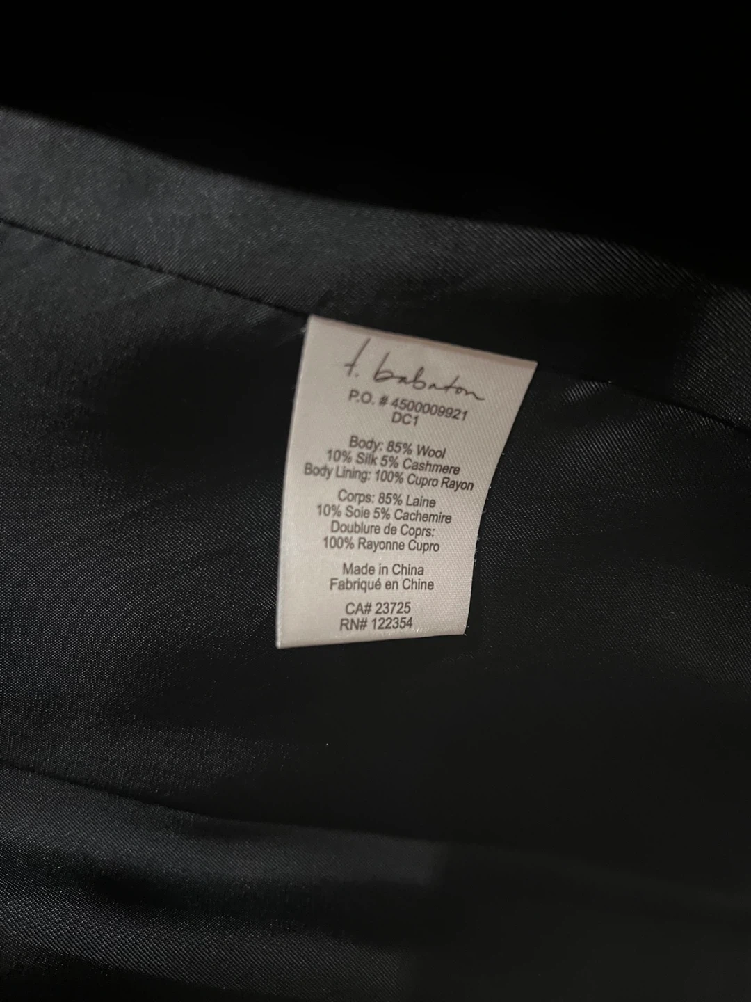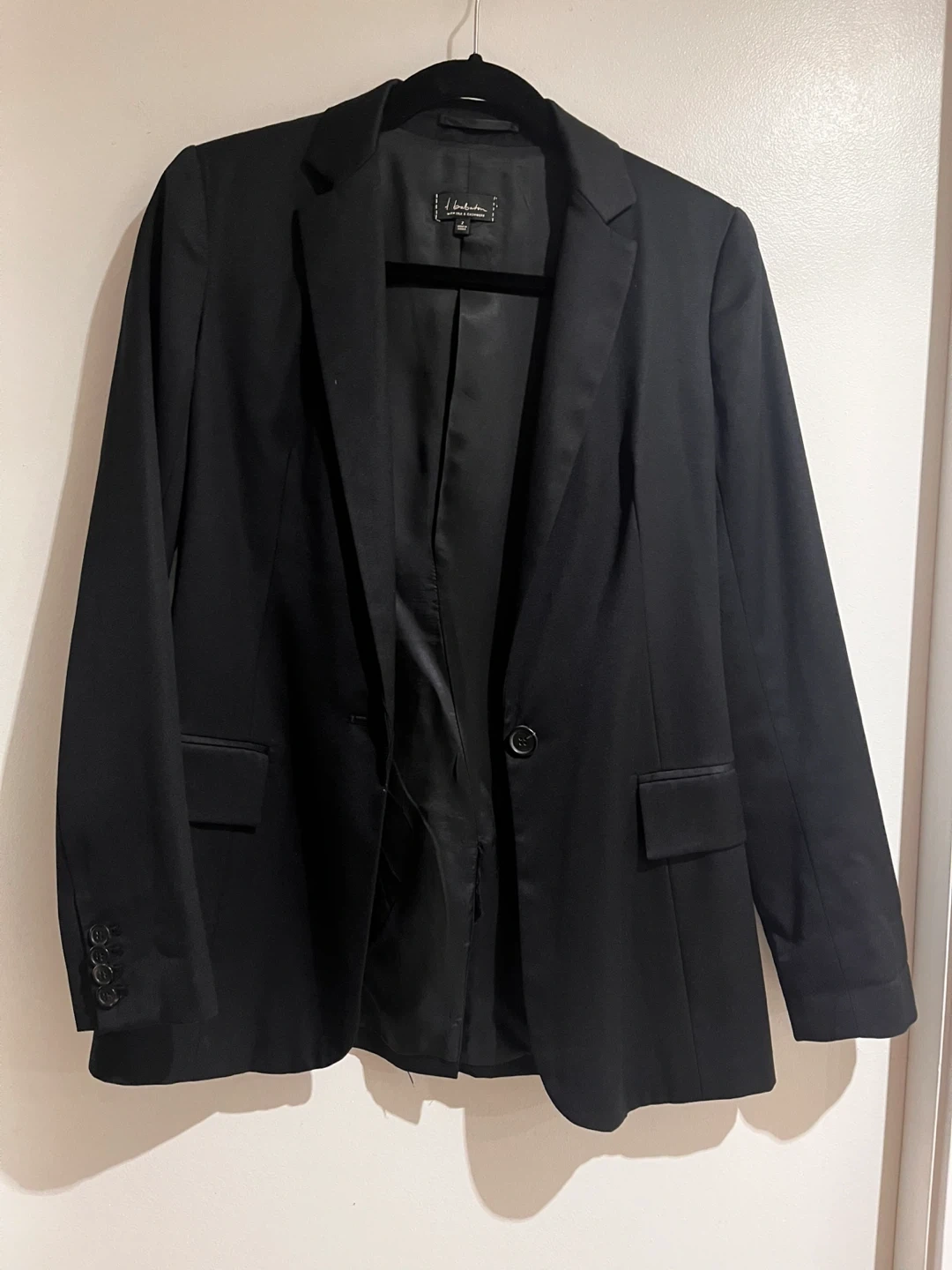 This is a stylish black blazer with an amazing feel from Babaton. It's made with a wool, silk and cashmere blend for comfort + quality. The body lining is 100% cupro. Would love to keep this, but it doesn’t fit! This jacket’s quality is hard to come by nowadays!