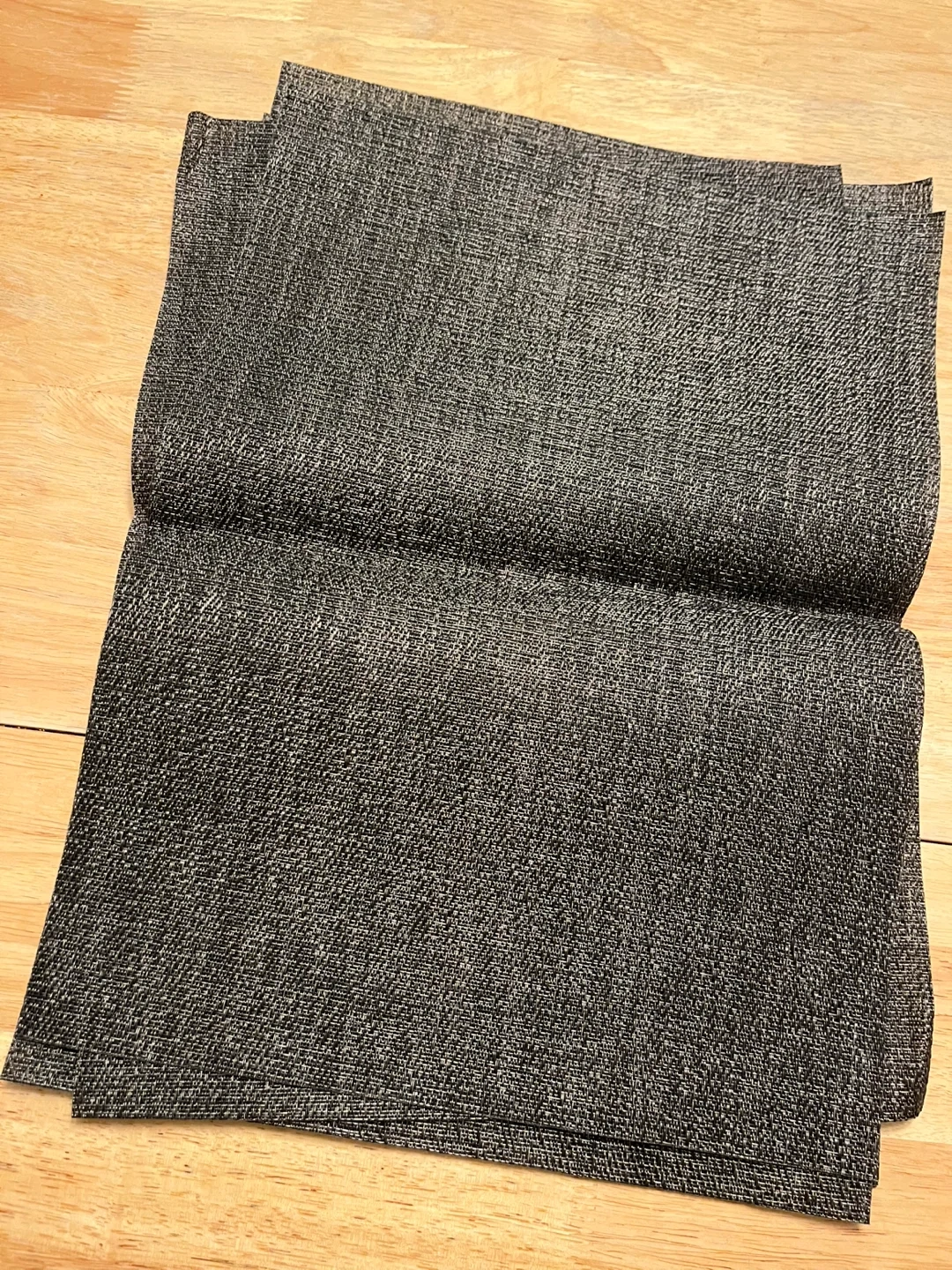 Looking to rehome these grey patterned place mats! We’ve had them put away and folded for awhile but they should be able to lie flat :)