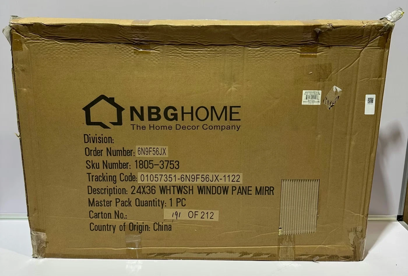 🆕️ 24x36 Distressed White Windowpane Wall Mirror with Hooks