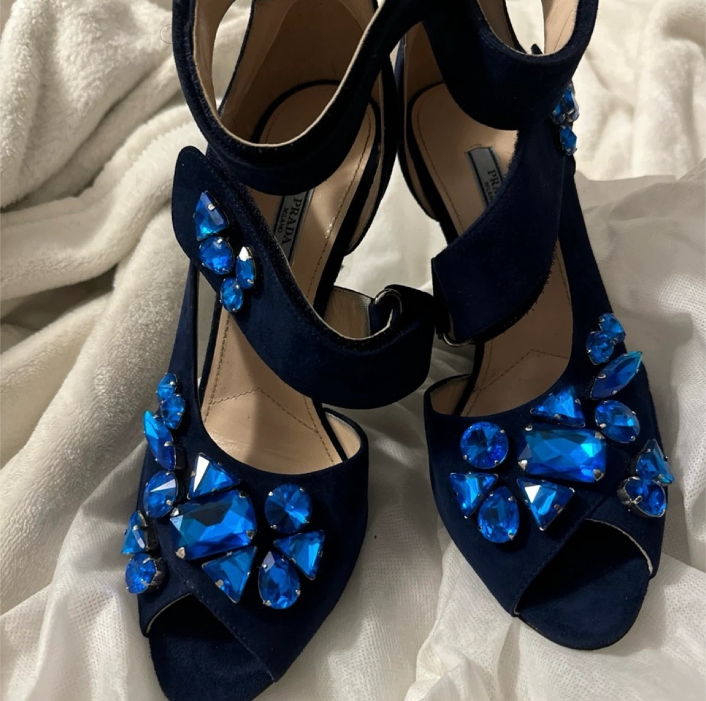 Prada Navy Blue Suede Crystal Embellished Heels Size 41