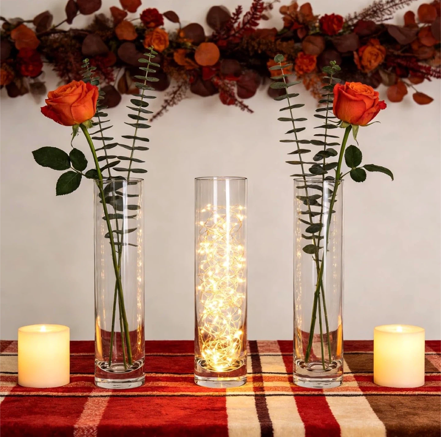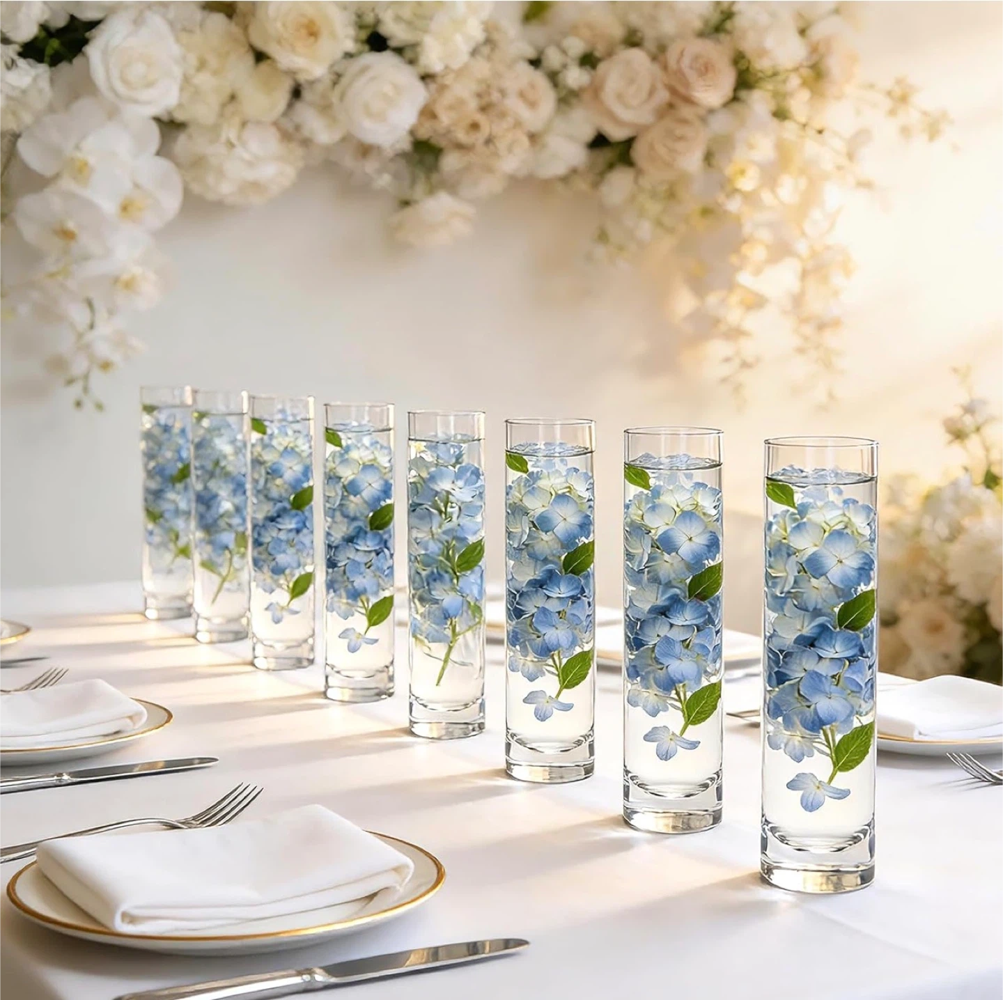 Set of 12 Clear Glass Cylinder Vases for Centerpieces