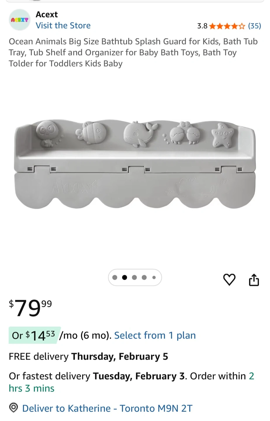 This Acext bathtub splash guard features cute ocean animal designs. It also functions as a tray and organizer for bath toys.
