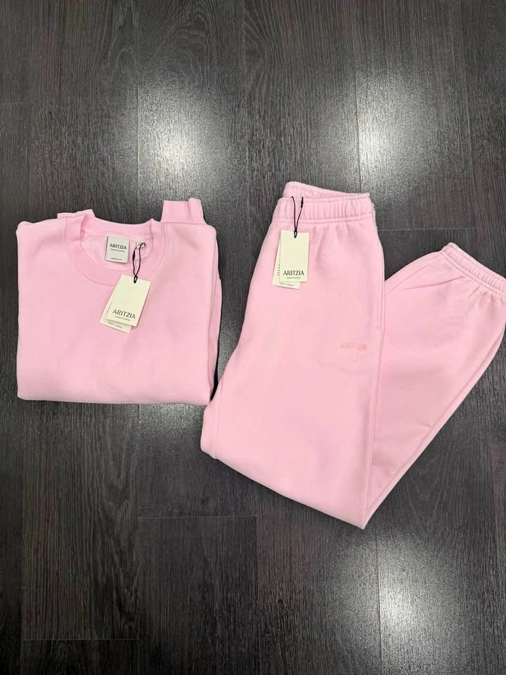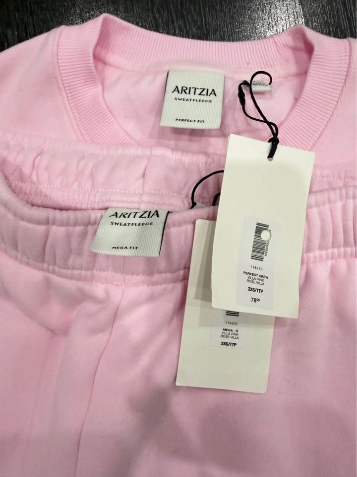 Brand new with tags. Colour: Villa Pink. Cozy Sweatfleece Perfect Crew Sweatshirt and Cozy Sweatfleece Mega Jogger. Pick up in Oakville at 130 King St W or Bronte & Dundas. Can also meet in Mississauga on my schedule. Check out my other listings for more Aritzia items.