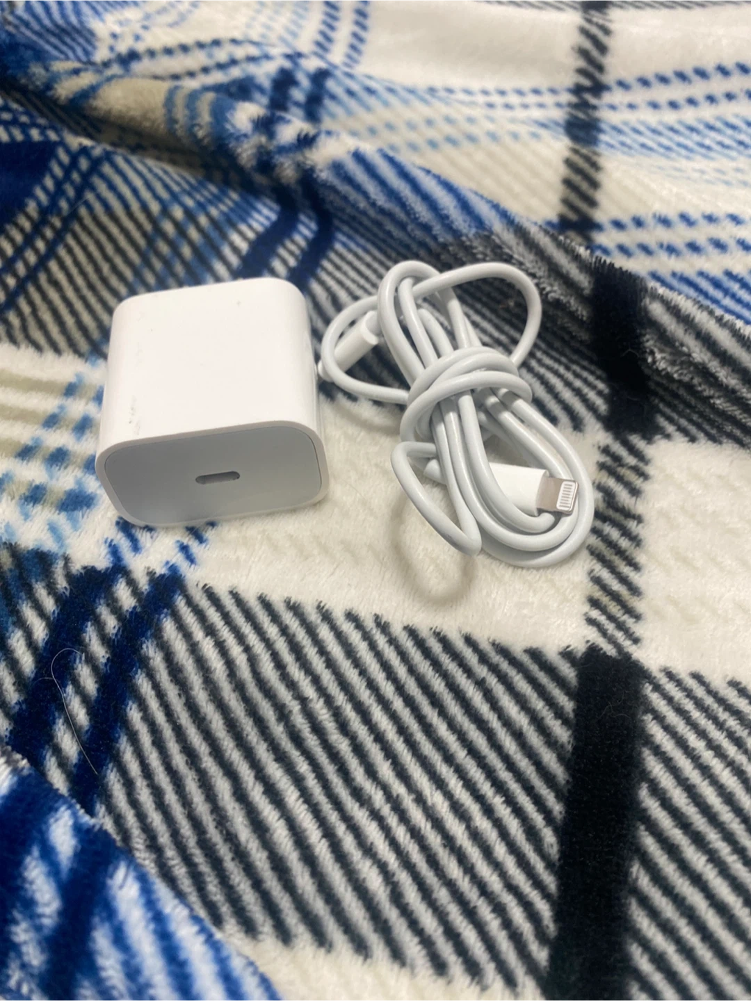 Includes a white Apple power adapter and a white Lightning to USB cable. It's for charging iPhones and other compatible Apple devices. Great for travel or as a replacement charger! Pick up cash only