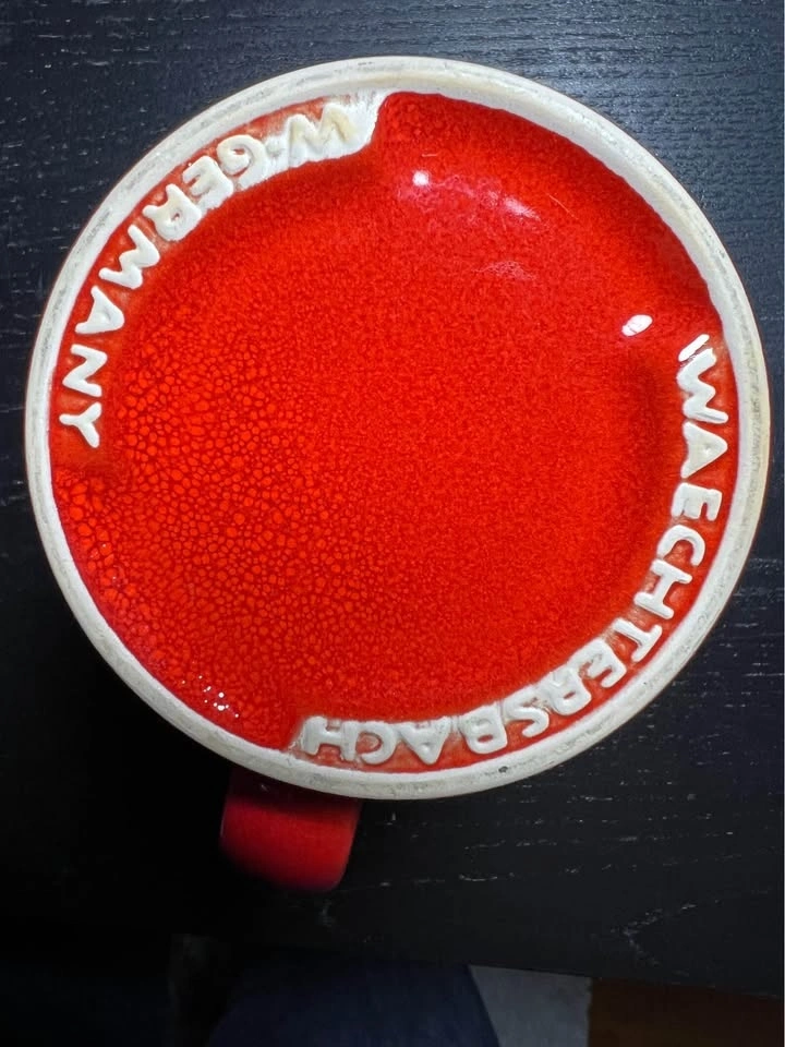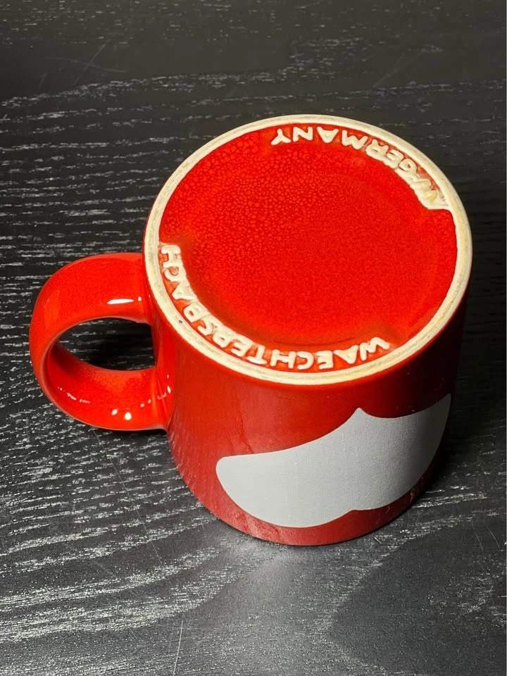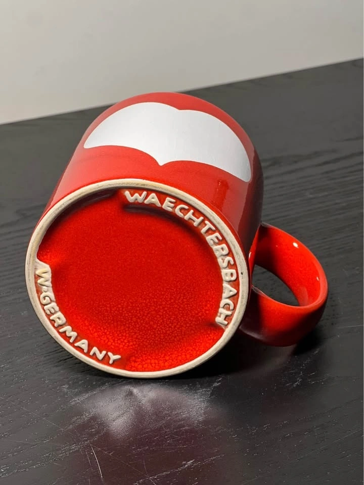 Waechtersbach HEART Mug. Made in Germany. Collectible coffee or tea mug. Height: 3 3/4 in. Width: 3 3/8 in. Features 1 BIG HEART. Earthenware. Crafted in West Germany. Dishwasher Safe. Discontinued piece.