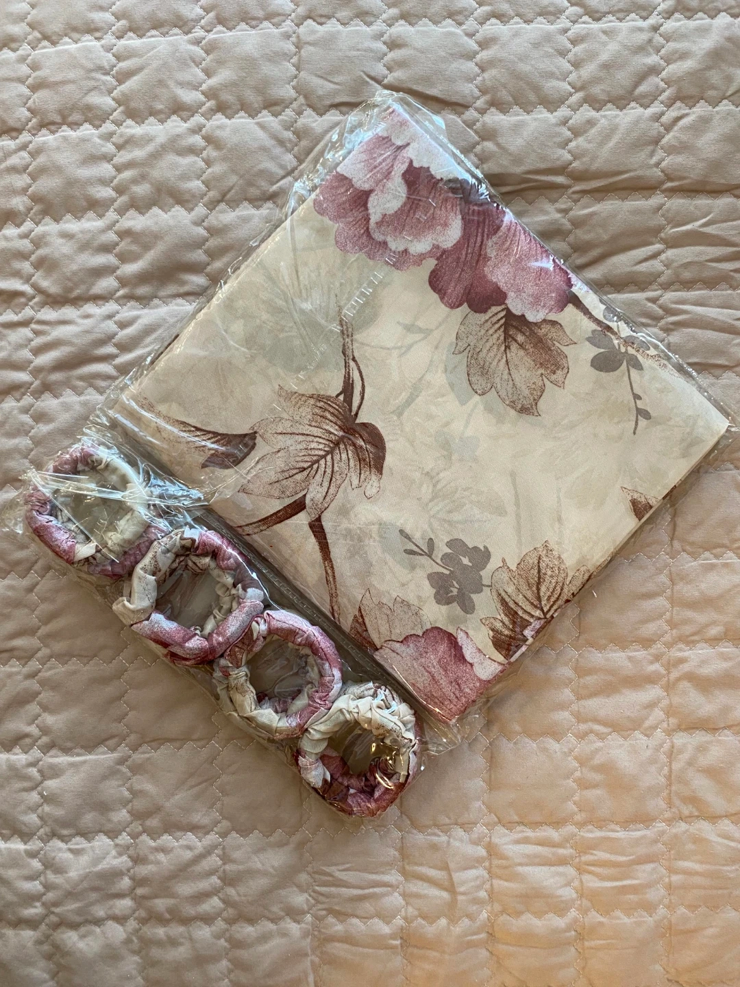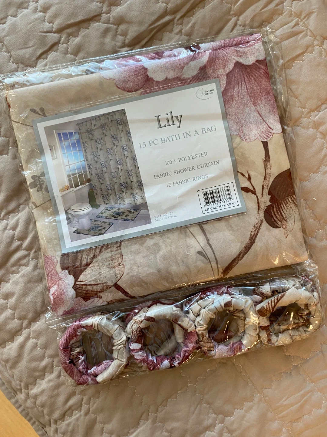 A 2-piece fabric shower curtain with 12 curtain rings, made from 100% polyester material. As the flowers already start blooming outdoors in the lower mainland, bring the outside in! 😄