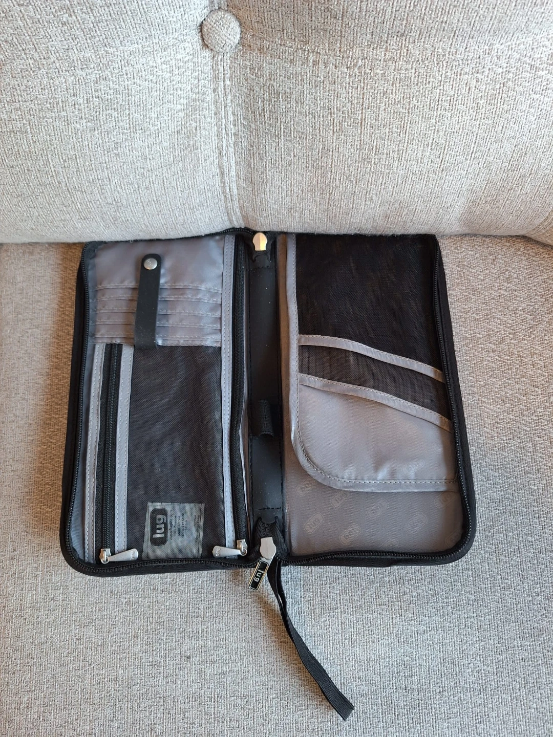 New, Lug brand passport and travel pouch with wrist band. Lots of sections to keep your travel documents organized. Excellent brand and quality, I have been using a similar one for many years!