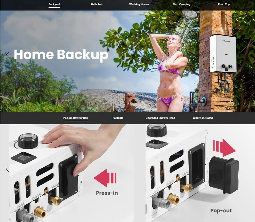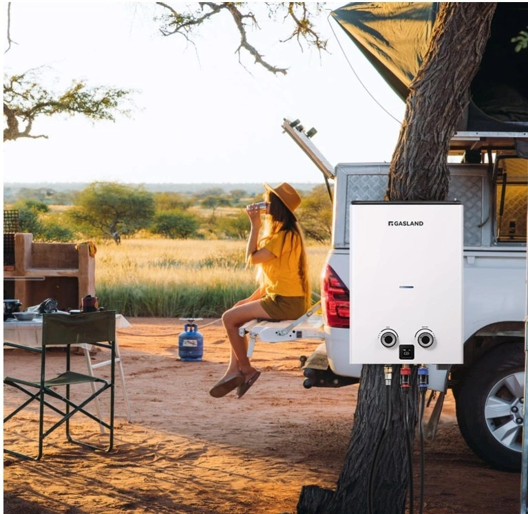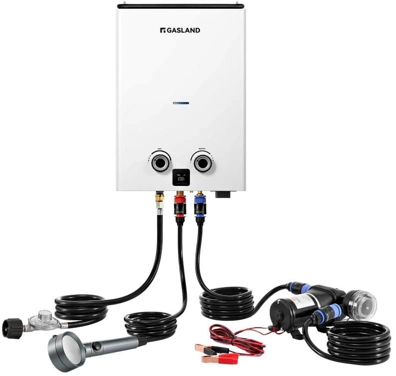Ultra Slim 10L Portable Water Heater - product size 13 (L) x 5.9(W) x18.5 (H) inches. The mini design is suitable for carrying on the go. 2.64GPM Propane Water Heater - Maximum power output 68,000BTU/Hr, heats up water in seconds that no need to wait. Idea for Off Grid - This tankless water heater uses a standard 20-pound liquid propane tank. Can be utilized while camping, in RV, hunting, poolside, washing pets or horses, cleaning a vehicle, or even in a tiny house, greenhouse, or cabin. Flexible Handle -The GASLAND outdoor water heater comes with foldable and slidable handle, easy to hang and store. The pop-up battery box allows you change the batteries in one hand, 2 D batteries are required(not included) for electronic ignition. Screwless Design - There is no any screw from the appearance to make the product safer(no-scratch).