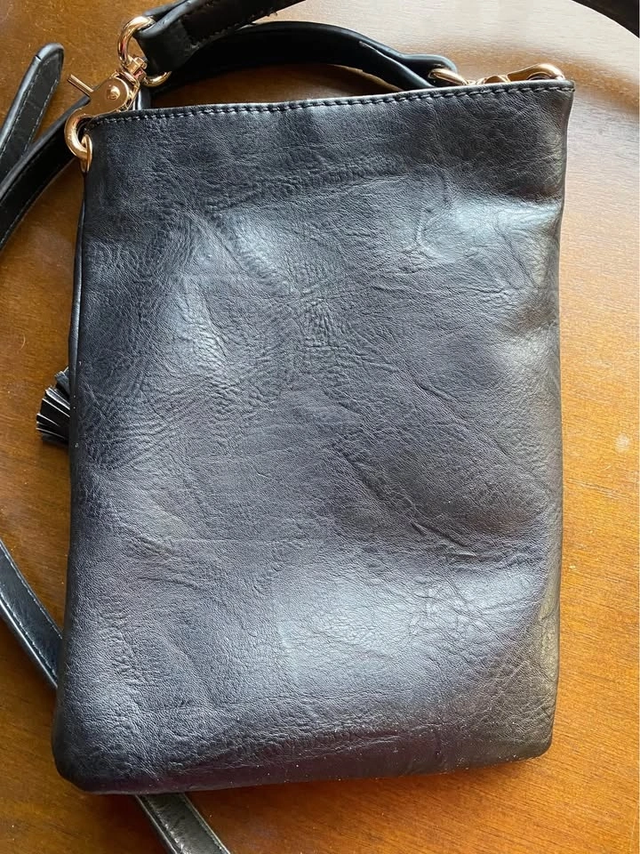 π Black Vegan Leather Crossbody Bag