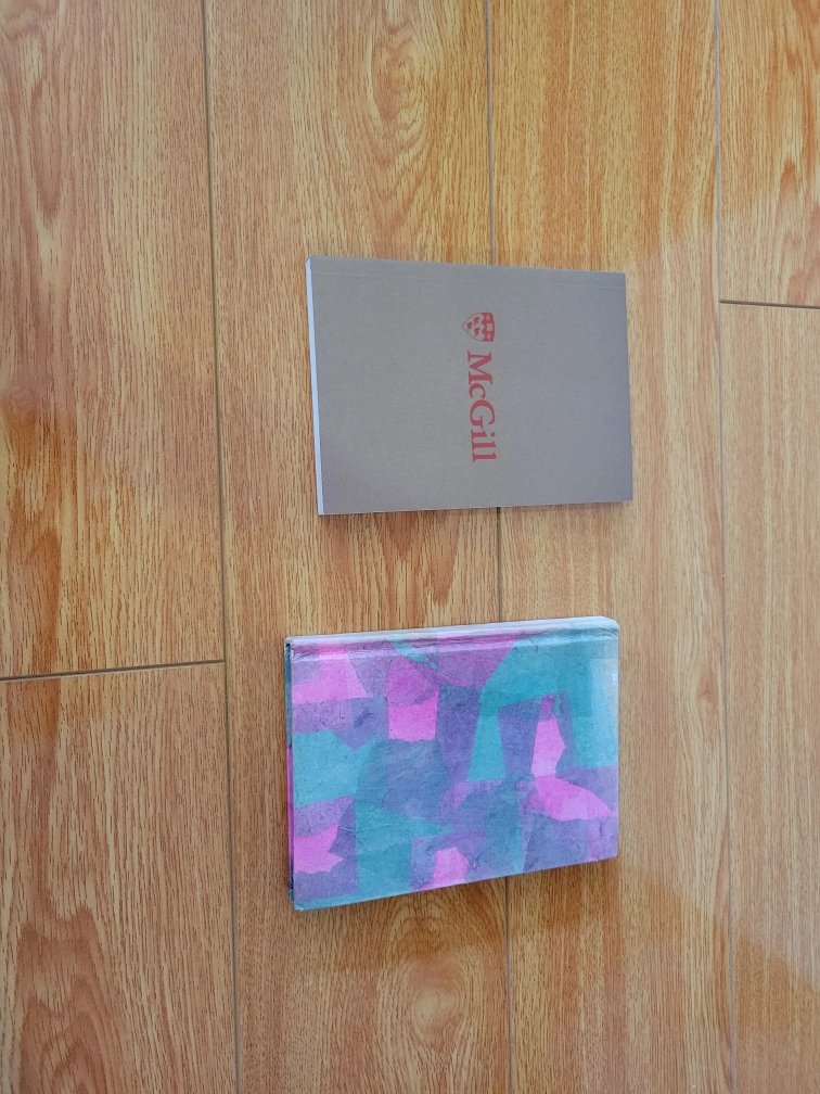 McGill notebook (gold) or blank artisanal paper notebook (pink and green)