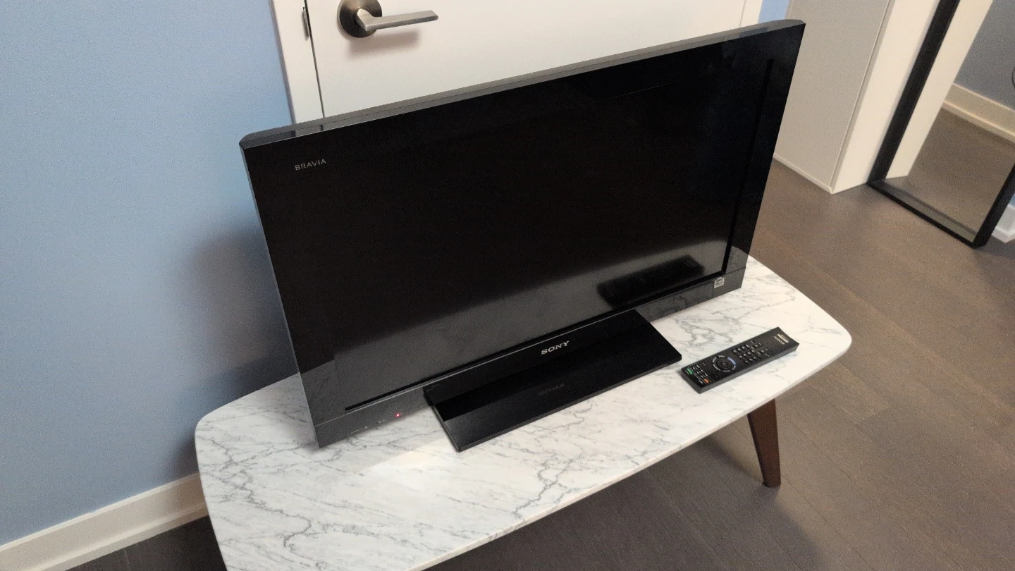 This is a Sony BRAVIA KDL-32BX300 32-inch LCD TV. It comes with its original remote control. The TV has multiple inputs including HDMI and PC. It's a great television for gaming or everyday viewing.