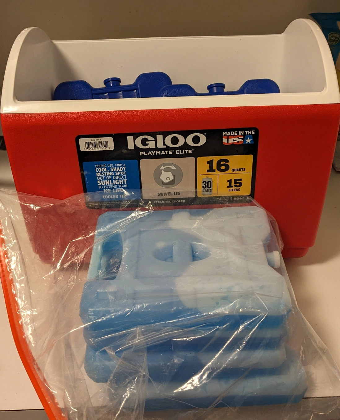 Igloo Playmate Elite Cooler with assorted ice packs