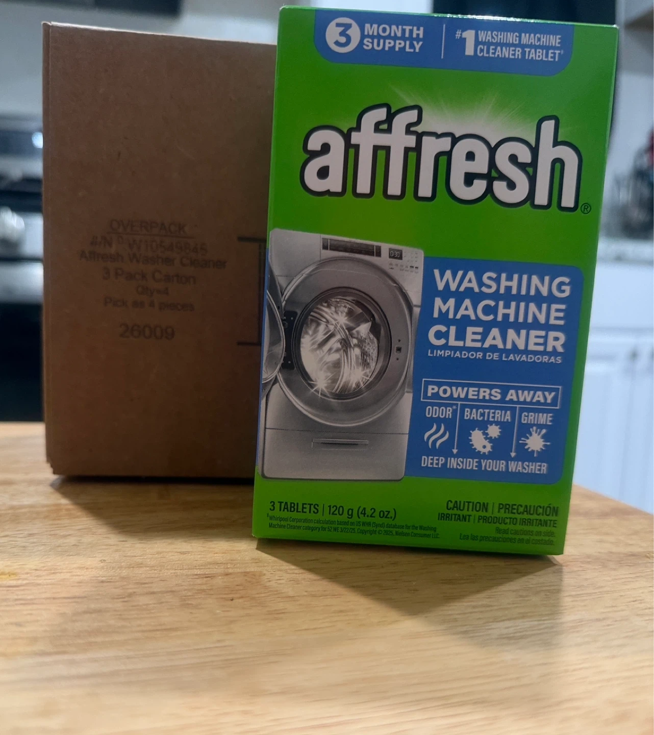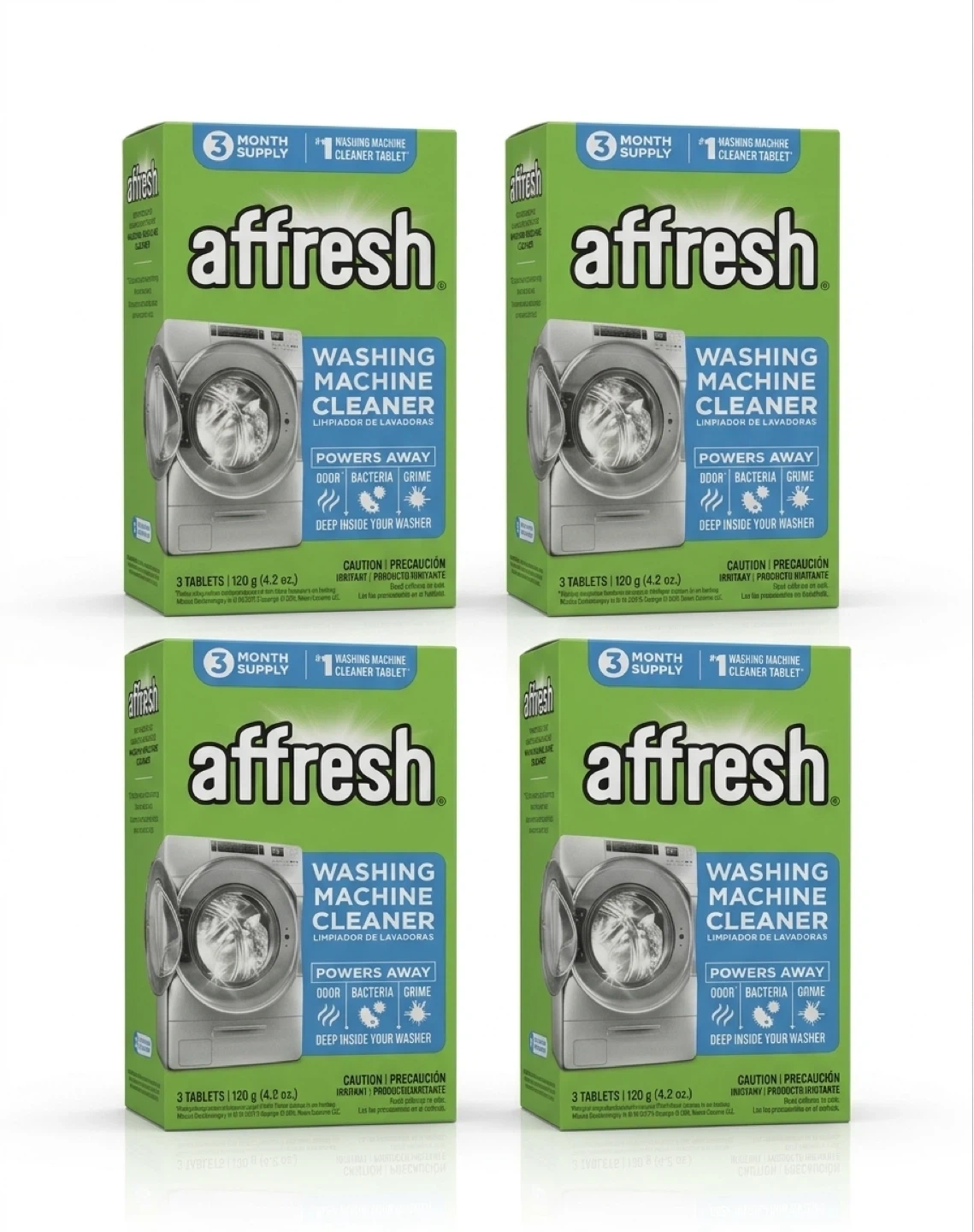 Affresh washing machine cleaner tablets. Powers away odor, bacteria, and grime deep inside your washer. 4 boxes:Each box contains 3 tablets, totaling 120g (4.2 oz)x4 boxes= 12 tablets