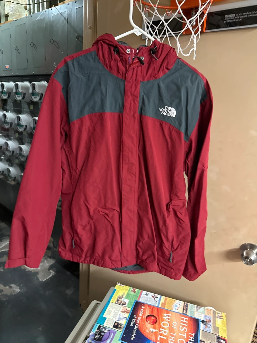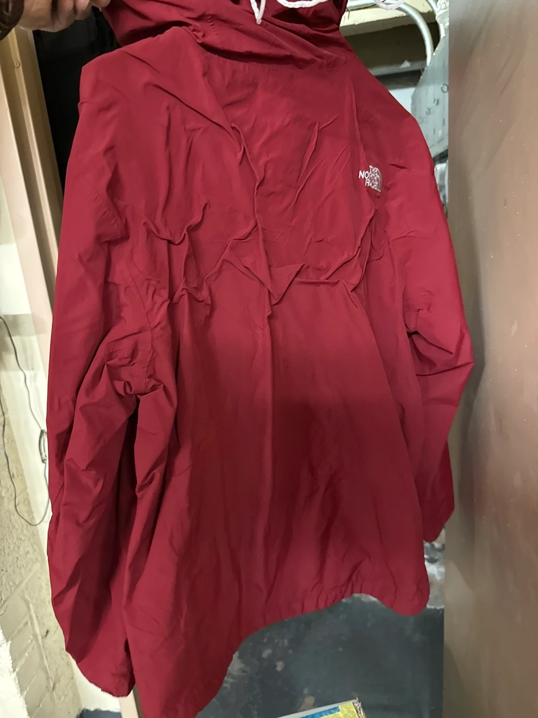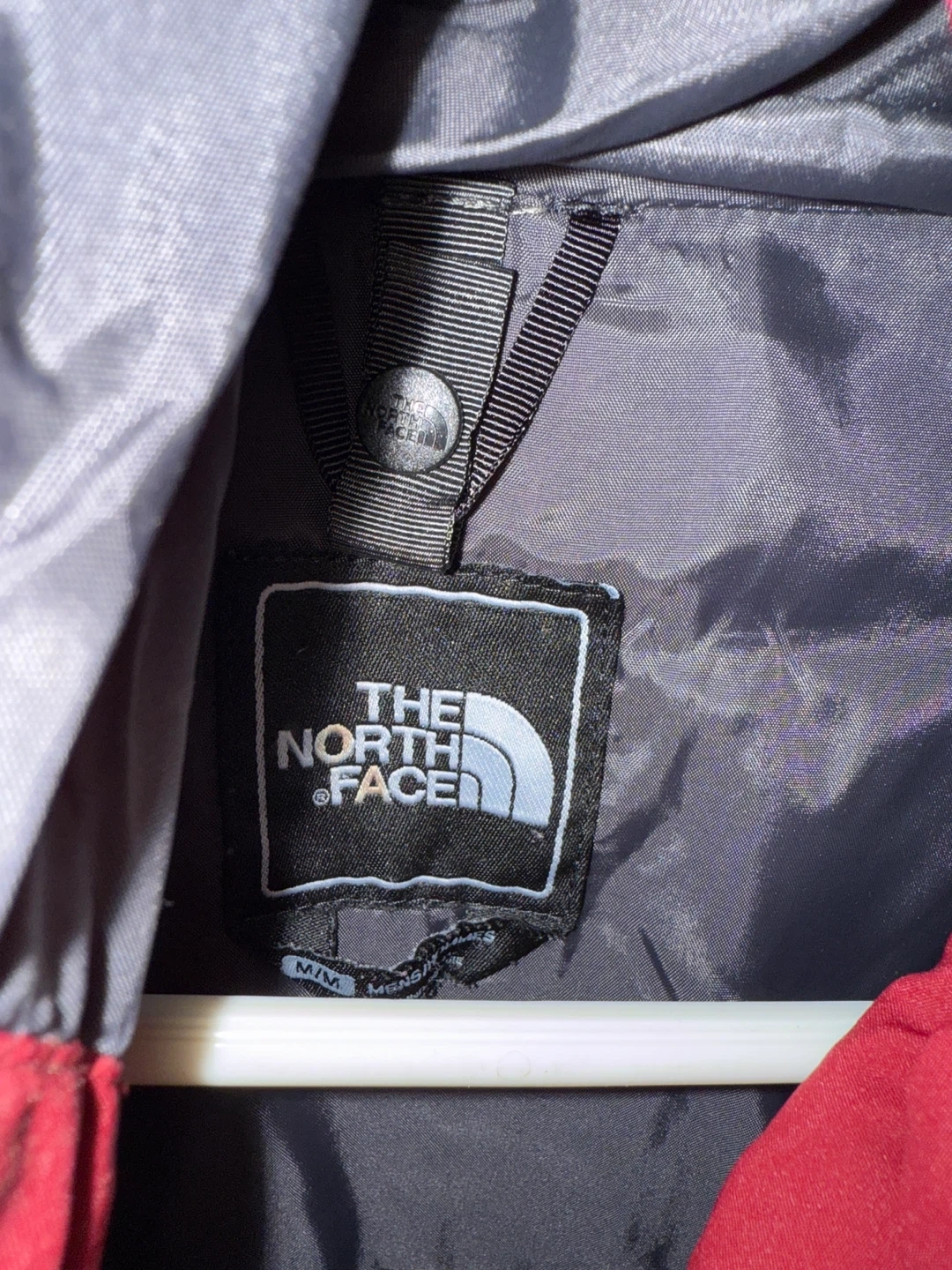 Selling a The North Face jacket in red. It's a size medium. This jacket is perfect for outdoor activities or just a casual day out. It's in great condition and ready for a new owner!