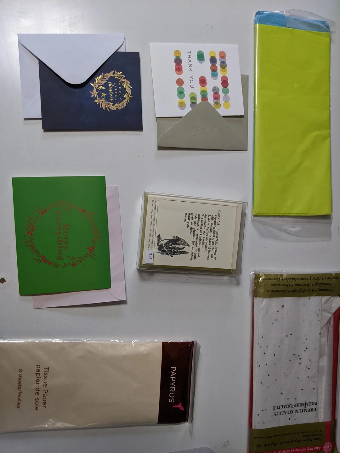 Box of beautiful cards with envelopes from Indigo, independent stores, other Christmas, Thank You, Miscellaneous Gift Tissue paper Ribbon, cord pick up near st Clair west