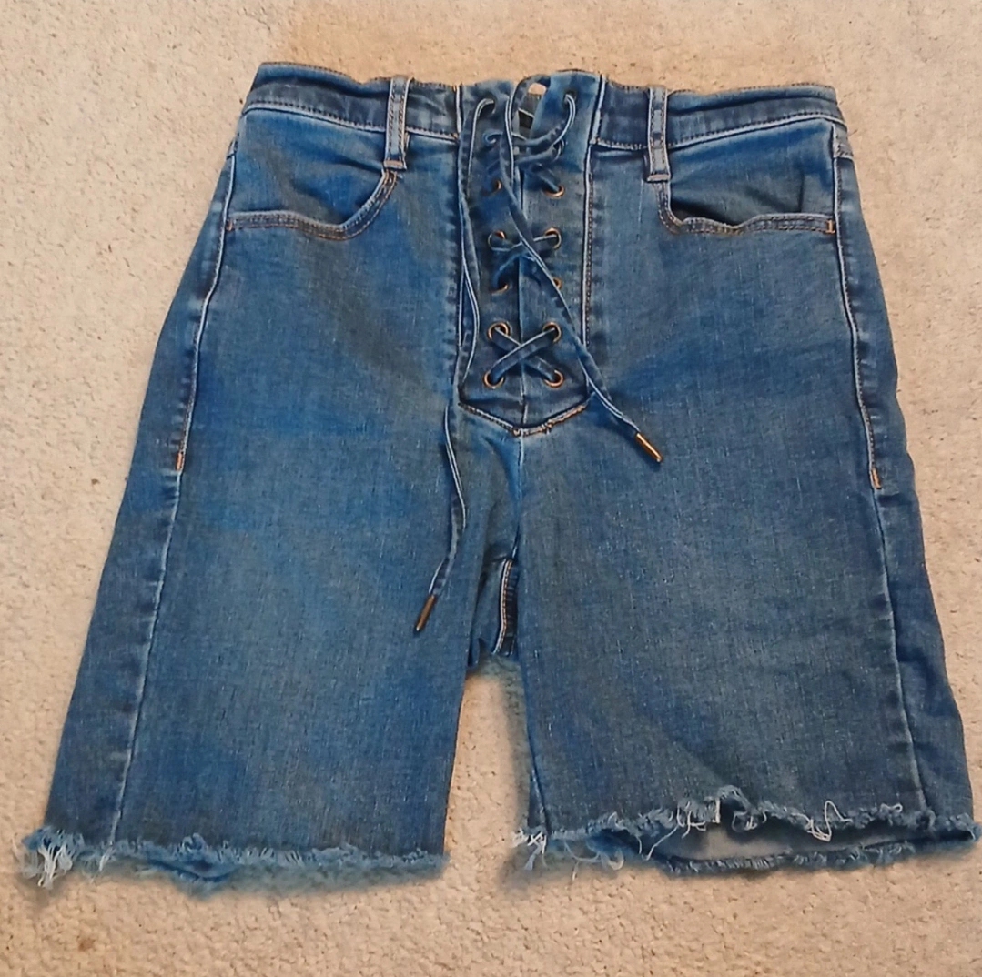 Type: Jean type of shorts with corset tied closure / lace up in front and real pockets