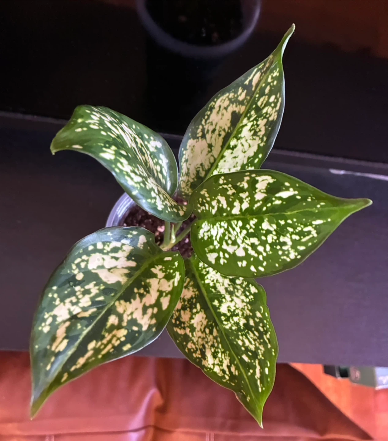 Selling a healthy Aglaonema plant! It's a beautiful houseplant with green and white speckled leaves. It's rooted and in soil 🪴