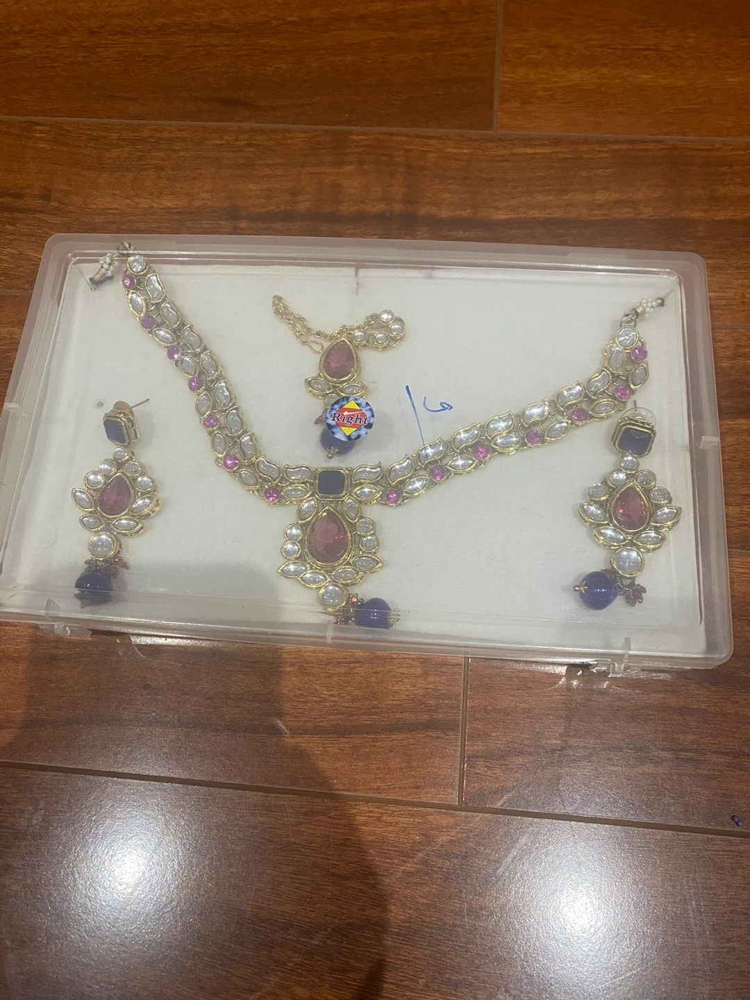 Gold-tone necklace with earrings with Pink and Blue Stones 🏆