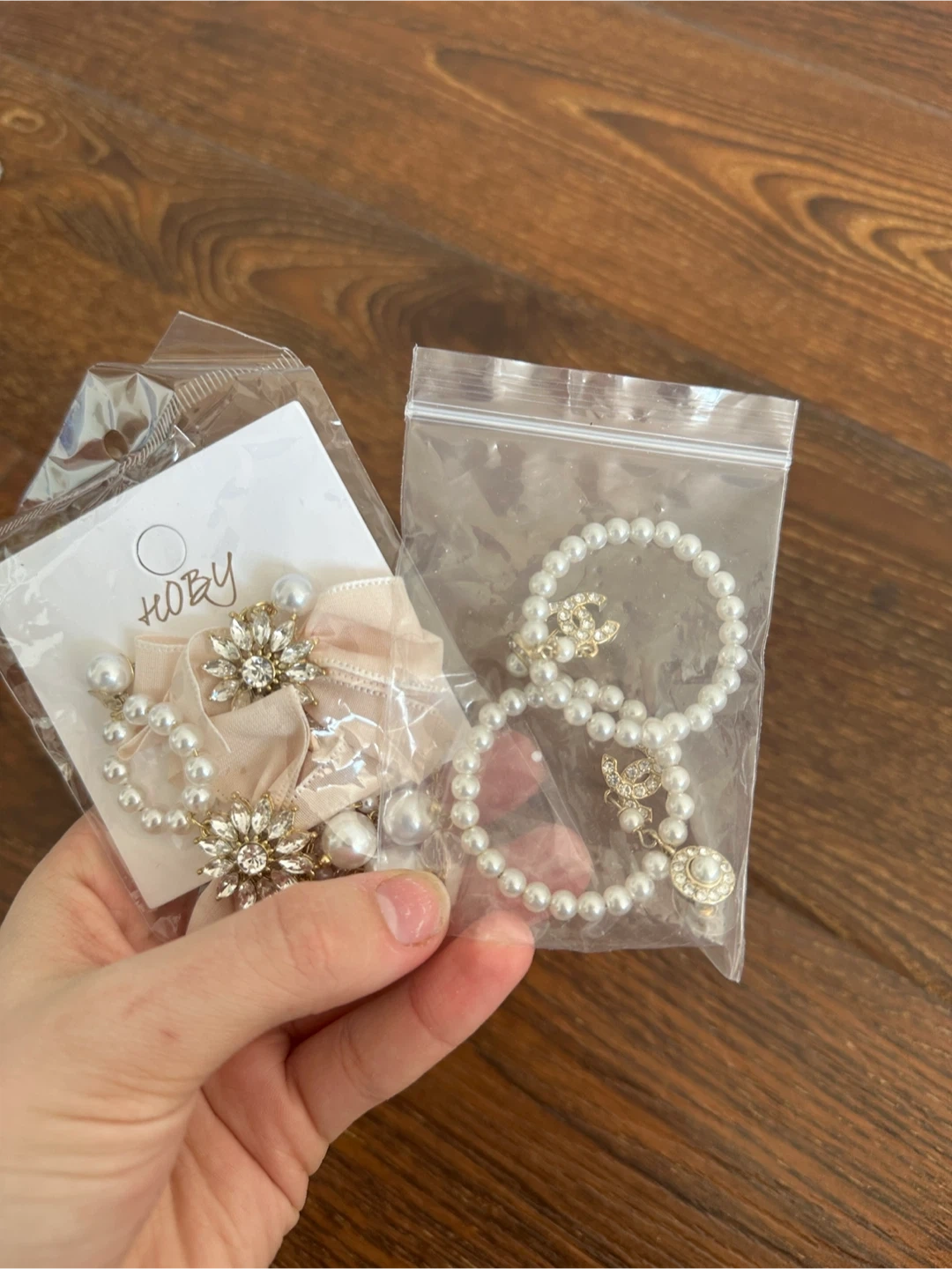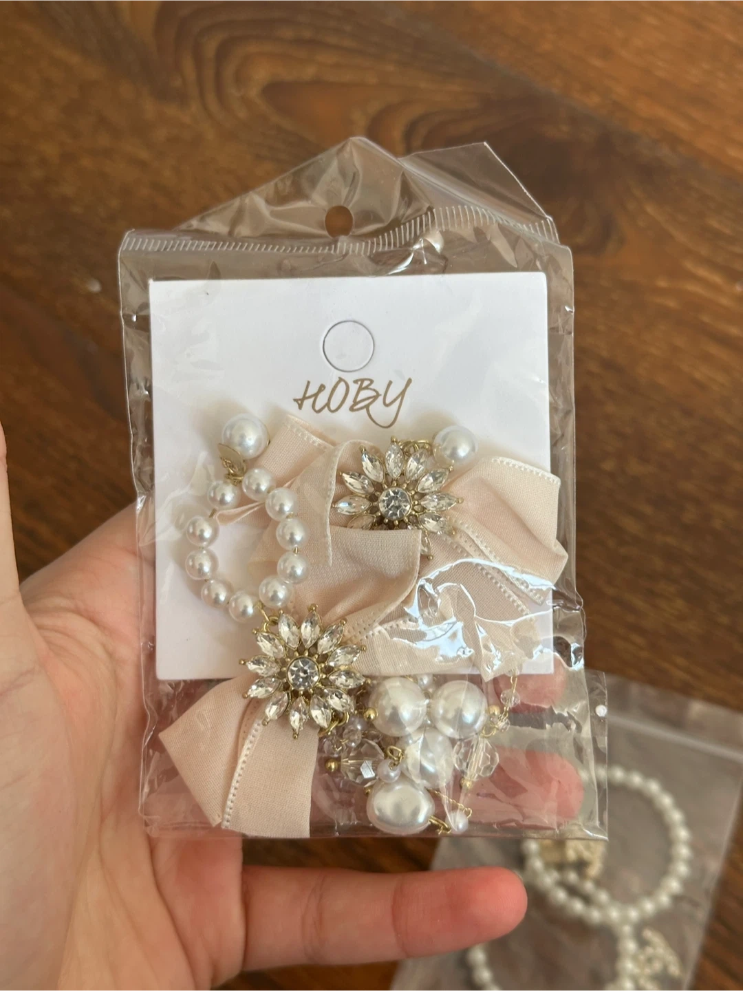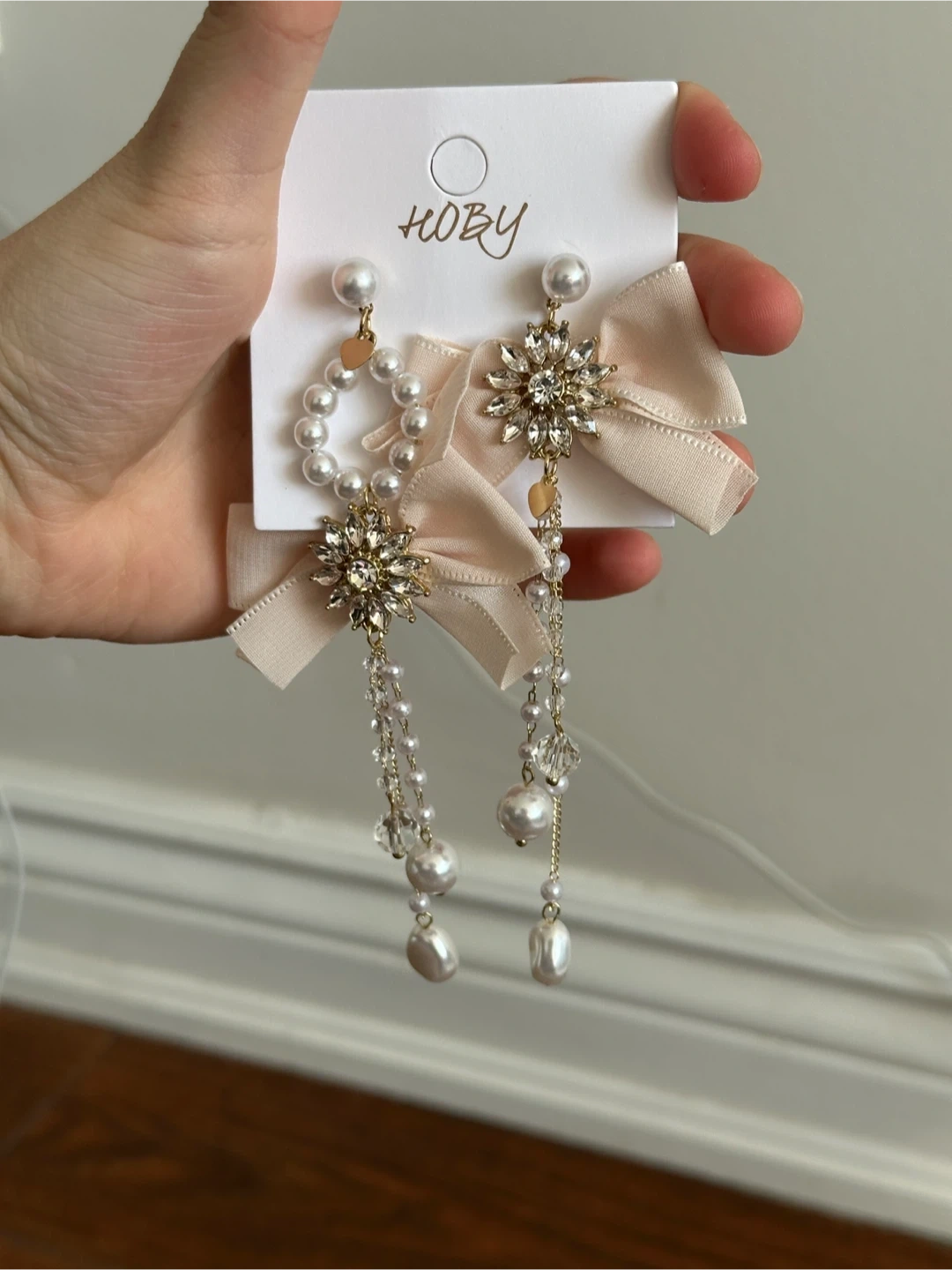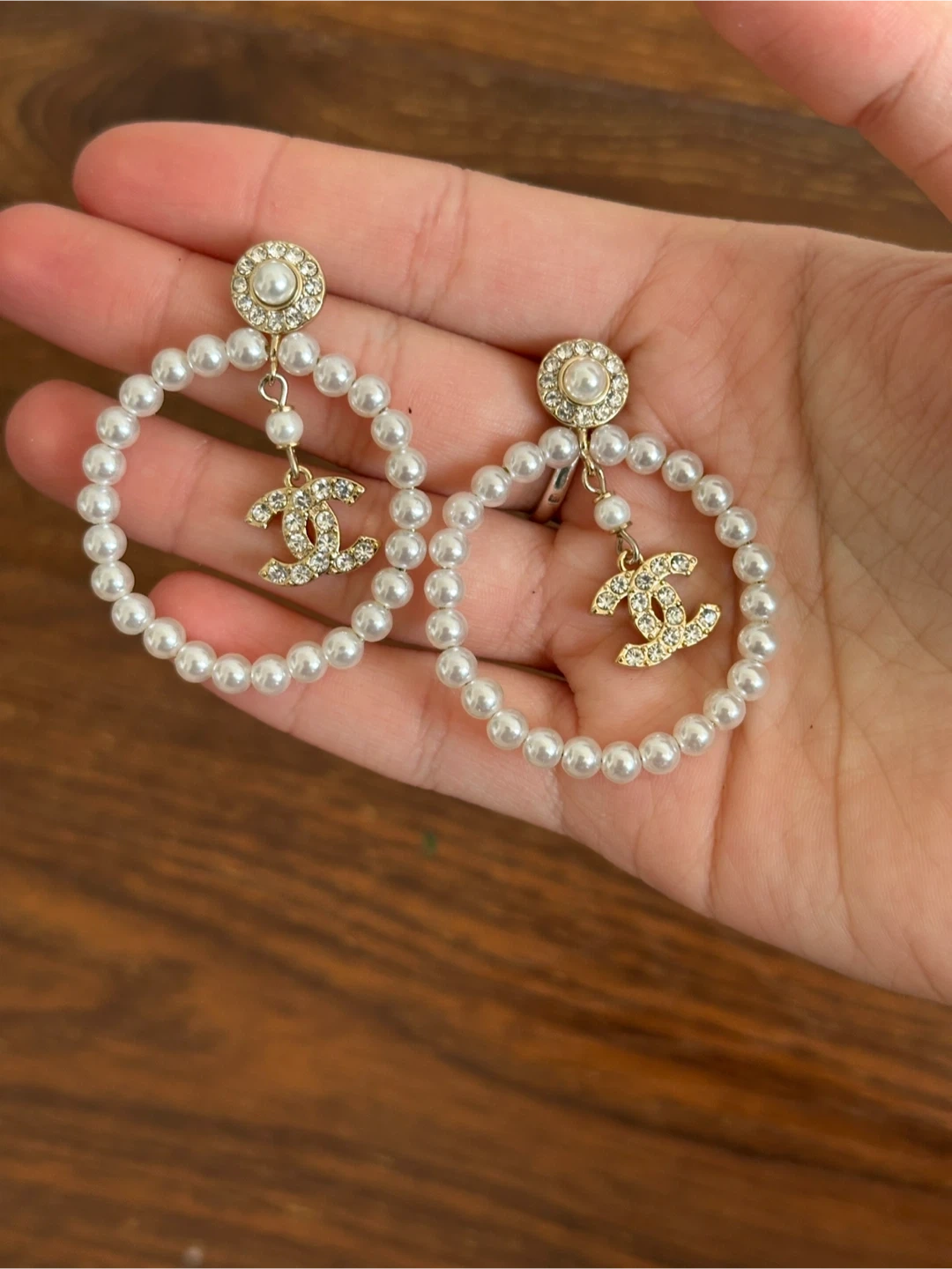 These elegant earrings feature a faux pearl hoop design with a sparkling rhinestone flower accent. They're lightweight and perfect for adding a touch of glamour to any outfit. The dangling pearls add extra shimmer!