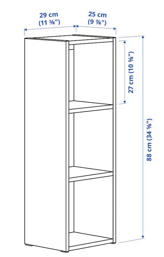 Dimensions of each shelf unit can be seen in an attached photo