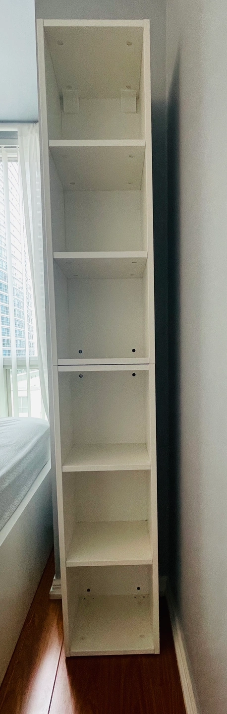 2 barely used shelf units. It was fixed one on top of the other as a wall mounted book shelf as shown in one of the photos. This was used in the guest bedroom so was barely used.