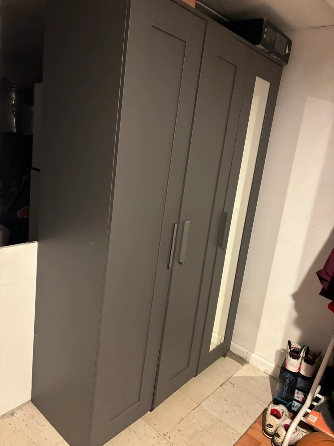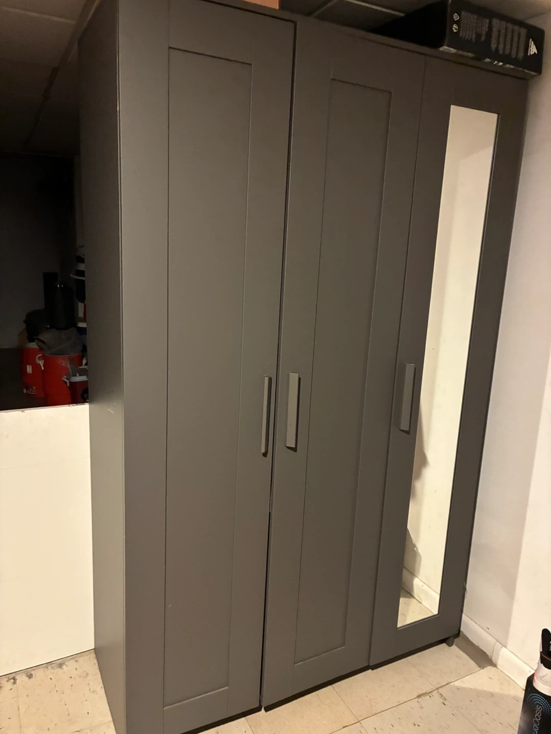 Brimnes wardrobe, it’s just like the one in the ikea site I just put the mirror at the end instead of the middle. Sell as is or you can come disassemble it. Price can be slightly negotiable